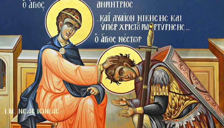 Ο Νέστορας, λοιπόν, βλέποντας ότι ο αυτοκράτωρ Διοκλητιανός χαιρόταν για τις νίκες κάποιου σωματώδους βαρβάρου, ονομαζόμενου Λυαίου, μίσησε την υπερηφάνεια του. Βλέποντας όμως και τα θαύματα του Αγίου Δημητρίου, πήρε θάρρος. Πήγε λοιπόν στη φυλακή, όπου ήταν κλεισμένος ο Μεγαλομάρτυρας, και έπεσε στα πόδια του. Δούλε του Θεού Δημήτριε, είπε, εγώ είμαι πρόθυμος να μονομαχήσω με το Λυαίο, γι’ αυτό προσευχήσου για μένα στο όνομα του Χριστού.