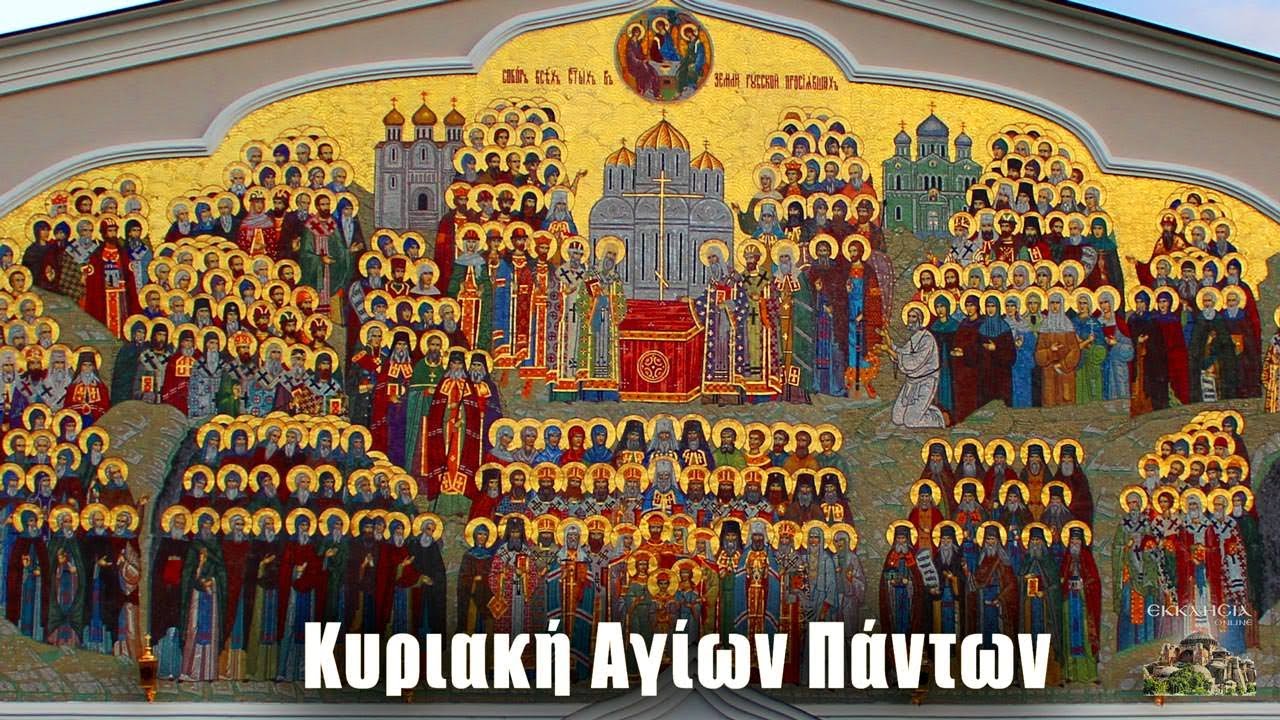 Την Κυριακή των Αγίων Πάντων, εορτάζουμε, όσους αγίασε το Άγιο Πνεύμα, τους Προπάτορες και Πατριάρχες, τους Προφήτες και ιερούς Αποστόλους, τους Μάρτυρες και τους Ιεράρχες, τους Ιερομάρτυρες και Οσιομάρτυρες, τους Όσιους και Δίκαιους και όλες γενικά τις άγιες Γυναίκες και τους υπόλοιπους ανώνυμους Αγίους.