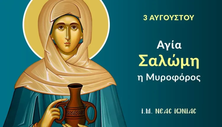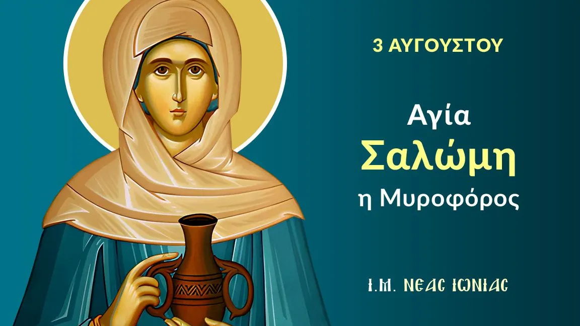 Η Αγία Σαλώμη η Μυροφόρος ήταν πρώτη εξαδέλφη της Παναγίας, μητέρας του Κυρίου μας Ιησού Χριστού. Είχε σύζυγο τον Ζεβεδαίο και γιους τον Ιάκωβο και τον Ιωάννη. Προικισμένη και η ίδια με ένθερμη ευσέβεια, ήταν από τις γυναίκες που ακολουθούσαν τον Χριστό, και συνεισέφεραν στο ταμείο της αποστολικής αδελφότητας. Η Σαλώμη ήταν εκείνη, παρακινούμενη από μητρική φιλοστοργία, που παρακάλεσε τον Κύριο όταν Αυτός πήγαινε για τελευταία φορά στην Ιερουσαλήμ, να τιμηθούν οι γιοί της με πρωτεύοντα αξιώματα.