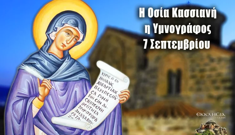 Η Οσία Κασσιανή, ή Κασσία ή Ικασία ή Εικασία, η Υμνογράφος γεννήθηκε μεταξύ του 805 και του 810 μ.Χ. στην Κωνσταντινούπολη και έζησε στα χρόνια του βασιλιά Θεοφίλου. Αρκετοί πιστοί πιστεύουν (λανθασμένα) ότι η Κασσιανή ήταν αμαρτωλή και διεφθαρμένη γυναίκα, και μιλώντας η Κασσιανή για την πόρνη γυναίκα του Ευαγγελίου βρίσκει ευκαιρία να μιλήσει για τον εαυτό της. Όπως όμως διαβάζουμε στον βίο της, από πουθενά δεν φαίνεται αυτό.