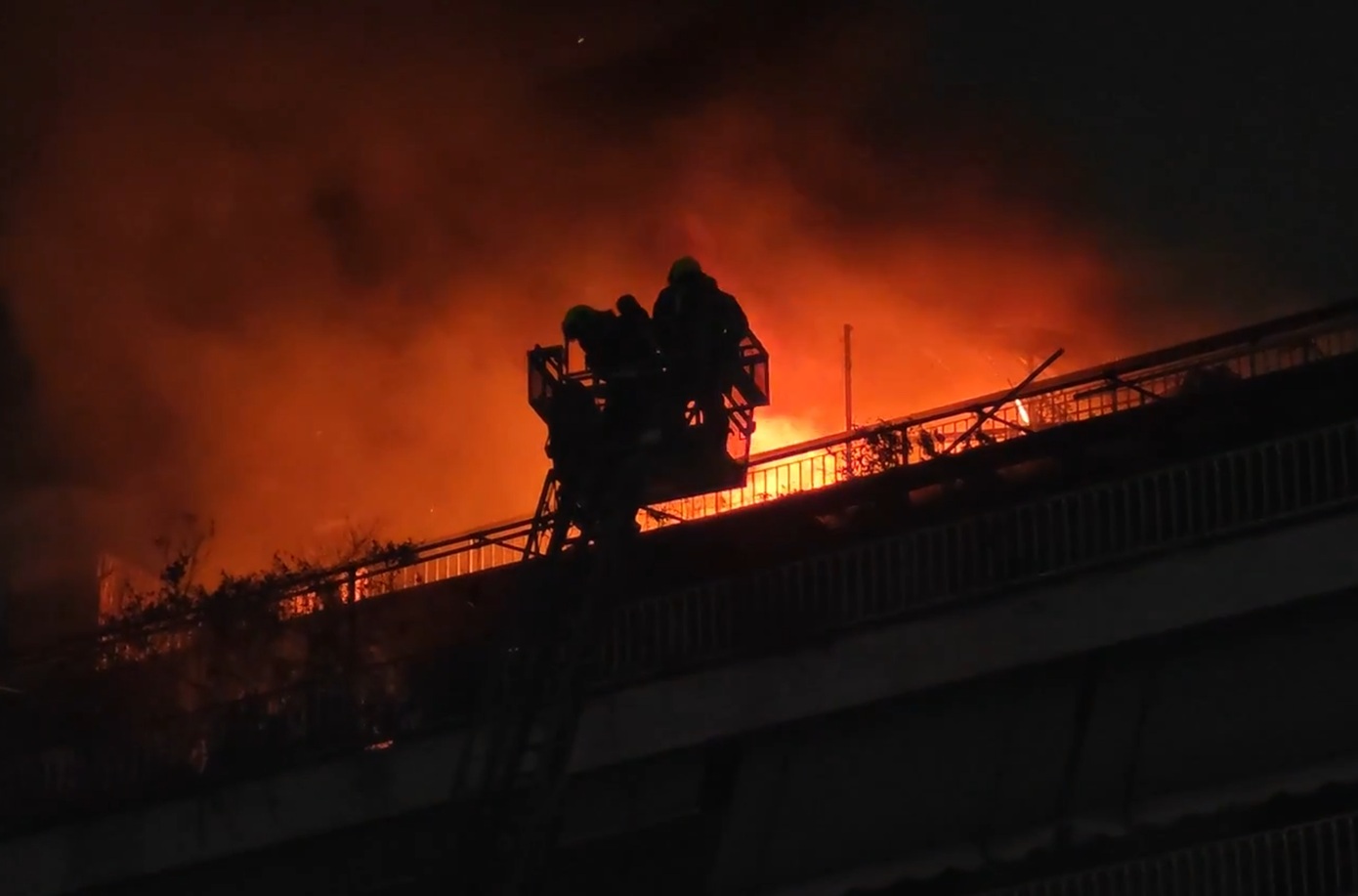 Γείτονες περιγράφουν τον κίνδυνο που πέρασαν καθώς από το δώμα όπου εκδηλώθηκε η φωτιά έπεφταν καύτερες στη βεράντα του κάτω διαμερίσματος .