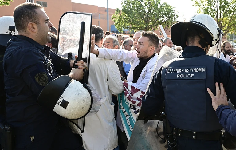 Από σοβαρά επεισόδια και ρίψη χημικών από την αστυνομία συνοδεύτηκε η επίσκεψη των Κυριάκου Μητσοτάκη και Άδωνι Γεωργιάδη στο νοσοκομείο «Αττικόν» για τα εγκαίνια του Τμήματος Επειγόντων Περιστατικών.