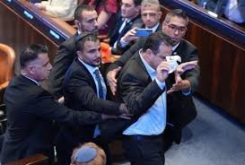 Η ομιλία του Τραμπ στην Κνεσέτ διεκόπη για λίγο, όταν παρενέβη ο βουλευτής Ayman Odeh, ζητώντας να αναγνωριστεί το Κράτος της Παλαιστίνης