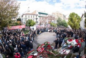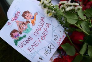 Μικρά παιδιά που έκαναν τις δικές του ζωγραφιές και αφήνουν γαρίφαλα, αλλά και τις δημιουργίες τους. Νέοι άνθρωποι, αλλά και γηραιότεροι που ήταν παιδιά όταν έγινε η εξέγερση από τους φοιτητές.