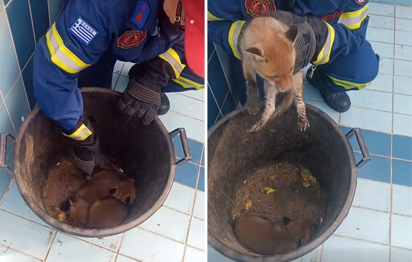 Επιχείρηση διάσωσης στο Πανόραμα Θεσσαλονίκης: Δύο μικρά αλεπουδάκια είχαν εγκλωβιστεί μέσα σε άδεια πισίνα σπιτιού