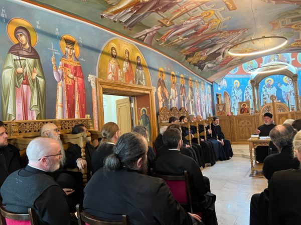 Στο παρεκκλήσιο της Μεταμορφώσεως του Σωτήρος, στην έδρα της Ιεράς Αρχιεπισκοπής Θυατείρων και Μεγάλης Βρεταννίας στο Λονδίνο, την Παρασκευή 3 Απριλίου 2026, πραγματοποιήθηκε ειδικό επιμορφωτικό σεμινάριο του κλήρου, το οποίο αφιερώθηκε αποκλειστικώς στη λειτουργική τάξη της Αγίας και Μεγάλης Εβδομάδος καθώς και της λαμπροφόρου εορτής του Πάσχα.