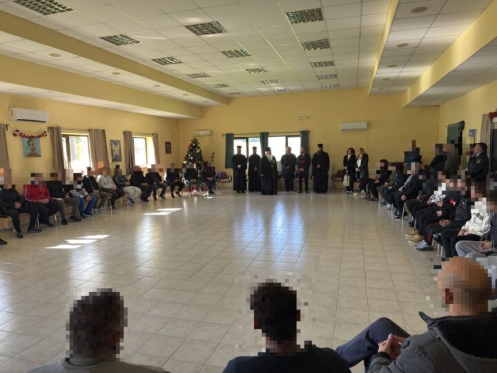 Ο Σεβασμιώτατος μετέβη στις Φυλακές μαζί με κληρικούς και συνεργάτες του Οργανισμού Κοινωνικών Δομών της Μητροπόλεως «Η ΑΡΩΓΗ», οι οποίοι έγιναν δεκτοί με χαρά από τους υπεύθυνους και τους κρατούμενους. Στο Κέντρο απεξάρτησης τοξικομανών ο Σεβασμιώτατος μίλησε για τα Χριστούγεννα σε όλους τους κρατούμενους και στη συνέχεια συνομίλησε κατ΄ ιδίαν με τον καθένα, τους μοίρασε τηλεκάρτες και τους ευχήθηκε για τις εορτές των Χριστουγέννων. Οι κρατούμενοι ευχαρίστησαν τον Σεβασμιώτατο και τραγούδησαν τα κάλαντα.