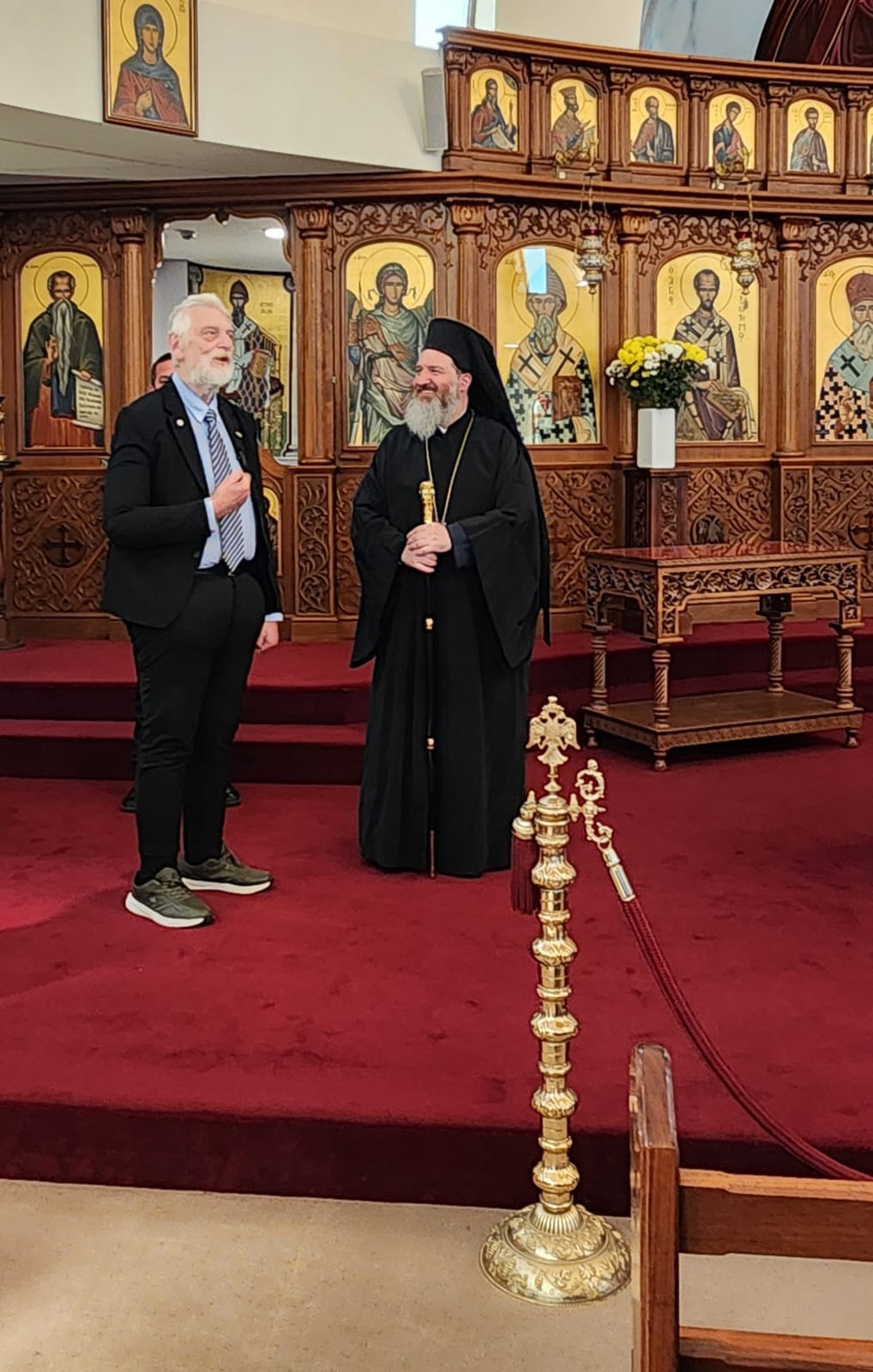 Ο Θεοφιλέστατος Επίσκοπος Πέρθης κ. Ελπίδιος καλωσόρισε με θέρμη τον Υφυπουργό, εκ μέρους του Σεβασμιωτάτου Αρχιεπισκόπου Αυστραλίας κ. Μακαρίου, σημειώνοντας ότι «σήμερα ανοίξαμε τόσο τις πόρτες όσο και τις καρδιές μας σε έναν υπουργό που μας άγγιξε βαθιά με την αγάπη του και τα εμπνευσμένα λόγια του».