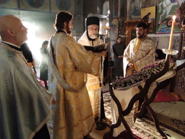 Τον Θεοφιλέστατο πλαισίωσαν ο εκ Μαρκατών καταγόμενος Πρωτοπρεσβύτερος Νικόλαος Δανέλης-εφημέριος της Ενορίας Αγίου Νικολάου Ψαχνών και Αρχιερατικός Επίτροπος Μεσσαπίων, ο Πρωτοπρεσβύτερος Χρυσοβαλάντης Φιλντίσης-προϊστάμενος της Ενορίας Παμμεγίστων Ταξιαρχών Χαλκίδος, ο πρεσβύτερος Κωνσταντίνος Πραντζίκος-εφημέριος της Ενορίας Μαρκατών και ο διάκονος Μάξιμος Χοϊένκο.