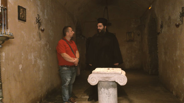 Ο Αρχιμανδρίτης π. Συνέσιος Βικτωράτος, Προϊστάμενος του Ιερού Ναού, μιλάει στην Pemtpousia TV και τον δημοσιογράφο Δημήτρη Στρουμπάκο για την Ιστορία του Βυζαντινού Μνημείου και μας ξεναγεί στις κατακόμβες με τους υπόγειους θαλάμους, με ίχνη νερού του Λυκείου Απόλλωνα, στο υπόκαυστο ενός ρωμαϊκού λουτρού, και στις κρύπτες της Βυζαντινής Μονής των Λυκοδήμων του 11 αιώνα.