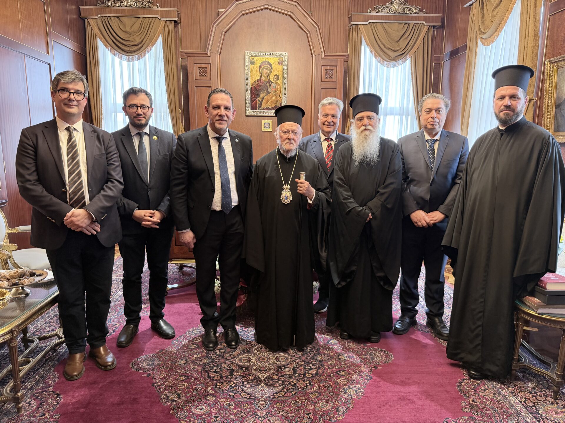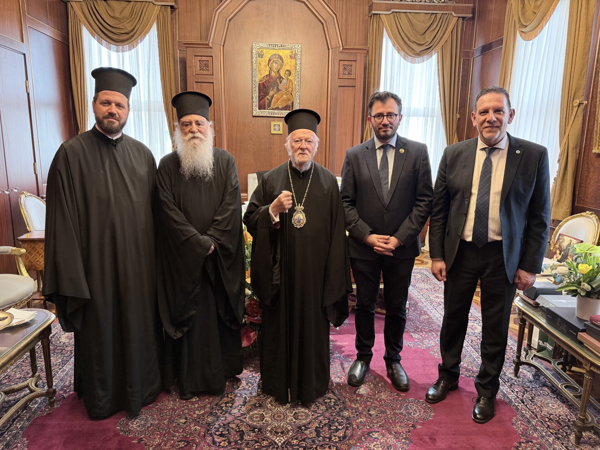 Την τιμητική απόφαση της Συγκλήτου του εκπαιδευτικού Ιδρύματος ανακοίνωσαν επίσημα στον Παναγιώτατο ο Πρύτανης, Καθηγητής κ. Ανδρέας Φλώρος και ο Άρχων Οφφικιάλιος του Πατριαρχείου Αλεξανδρείας κ. Χρήστος Καρύδης, Αναπλ. Καθηγητής και Πρόεδρος του Τμήματος, κατά την πρόσφατη συνάντηση που είχαν στο Φανάρι.