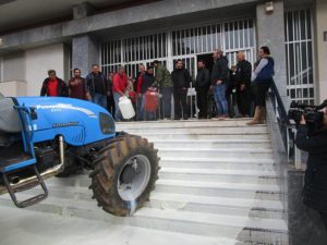 Όπως αναφέρει το tharrosnews.gr, αγρότες με τα τρακτέρ τους μετέβησαν στο κτήριο της Περιφερειακής Ενότητας Μεσσηνίας όπου αποφάσισαν να χύσουν γάλα στο εσωτερικό του κτηρίου.