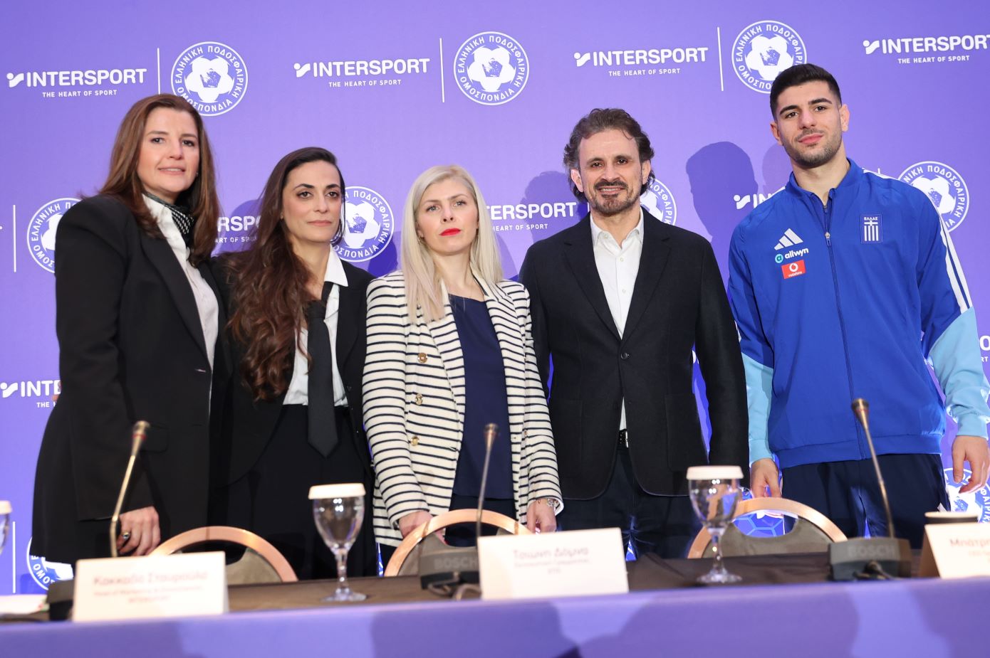 Από την πλευρά της ΕΠΟ μίλησε επίσης η Εμπορική Διευθύντρια Μαρία Γκούμα και από την Intersport ο CEO Sportswear Market της εταιρείας, Βαγγέλης Μπάτρης και η Reagional Head of Brand Communications and Ecommerce, Σταυρούλα Κακκαβά.