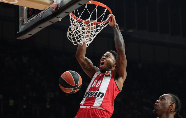 Ο Αμερικανός σέντερ έκανε κόντρα στους Ισραηλινούς το ευρωπαϊκό ντεμπούτο με τους «ερυθρόλευκους» και βοήθησε και αυτός για να έρθει η τρίτη συνεχόμενη νίκη.