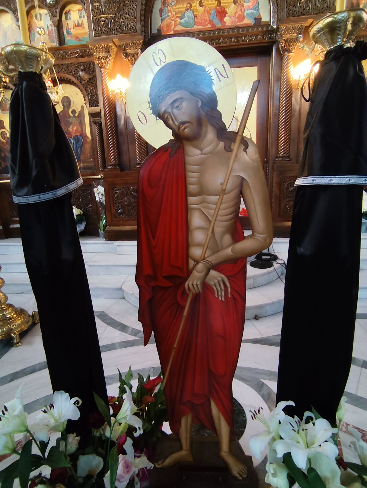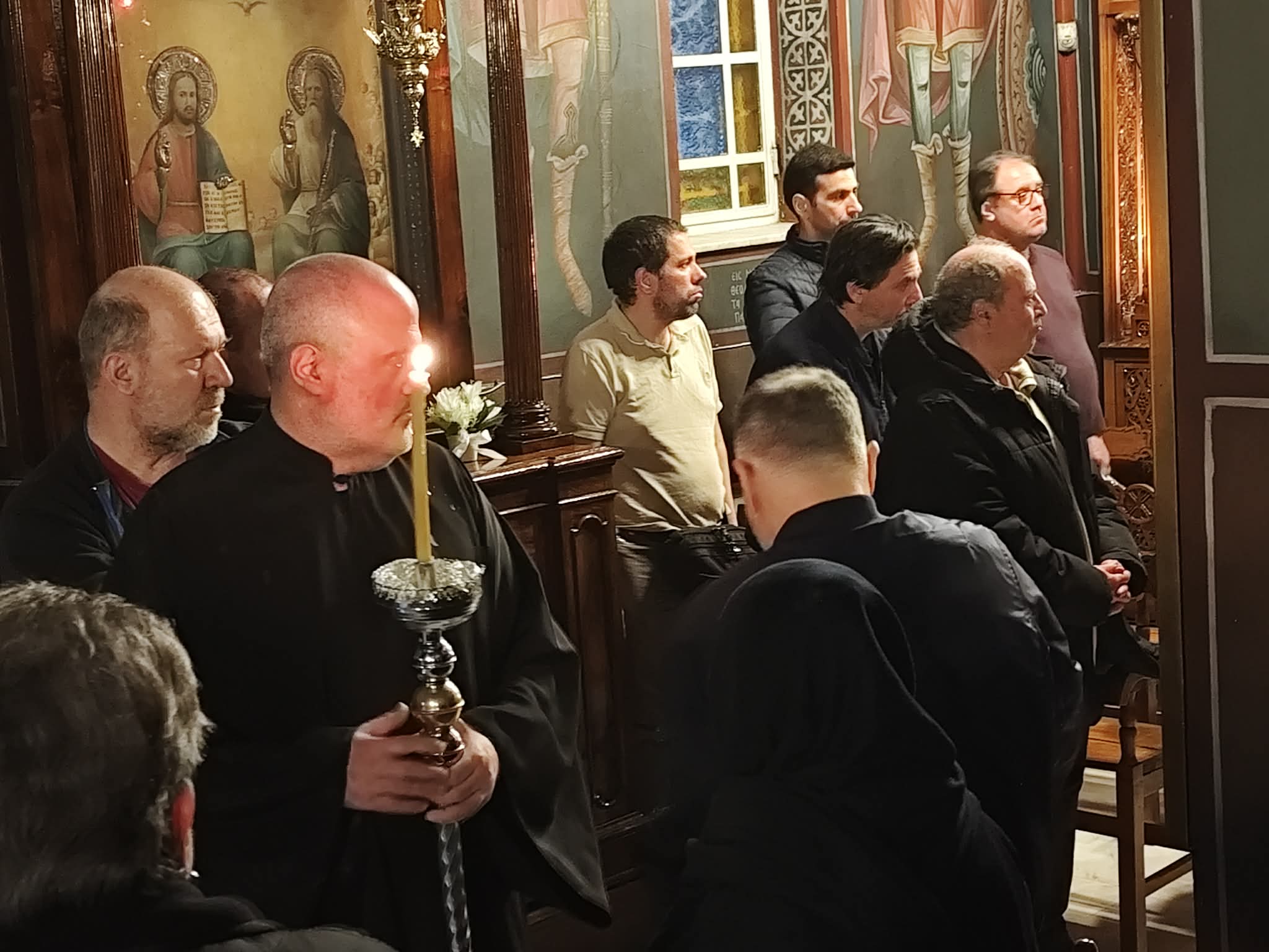 Της λειτουργίας της Μεγάλης Δευτέρας, όπως προαναφέραμε- Ακολουθίας του Νυμφίου, χοροστάτησε ο ευλαβής πατέρας της Παναγίας Λένορμαν και ιερατικός προϊστάμενός της, Πατέρας κος Φιλάρετος Χριστιάς, ενώ ευχάριστη έκπληξη αποτέλεσε η συνδρομή στο δεξί αναλόγιο του ναού, παράλληλα με τον εξαίρετο ψάλτη της Παναγίας Λένορμαν κο Αθανάσιο Κωνσταντόπουλο, του διακεκριμένου ποινικολόγου κου Περικλή Σταυριανάκη, που ευλαβείται πολύ την Παναγία της Κολοκυνθούς και την συνδράμει ηθικά, πολύτροπα.