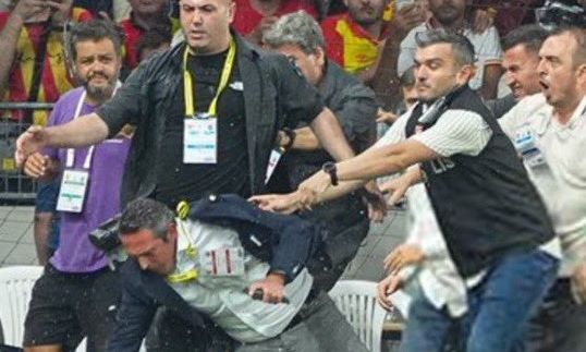 Όμως, αφού τα πνεύματα ηρέμησαν, ο πρόεδρος της Φενέρ επέστρεφε στη θέση του, περνώντας μέσα από τον αγωνιστικό χώρο με έντονη συνοδεία, αλλά ένας άνδρας τον πλησίασε από πίσω, τον έσπρωξε και τον έριξε στο χορτάρι.