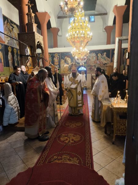 Πριν το τέλος της Θείας Λειτουργίας ο Σεβασμιώτατος ομίλησε καταλλήλως για τα νοήματα της Κυριακής μετά την μεγάλη Δεσποτική Εορτή της Γεννήσεως του Χριστού. Επεσήμανε ότι η Εκκλησία δεν μας αφήνει να παραμείνουμε στη γαλήνη της φάτνης. Μας οδηγεί αμέσως στην εμπειρία του πόνου, καθώς το Θείο Βρέφος καταδιώκεται.