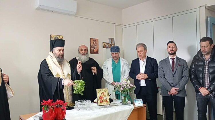 Αμέσως μετά, ο Σεβασμιώτατος επισκέφθηκε το Μποδοσάκειο Νοσοκομείο Πτολεμαΐδας, όπου τέλεσε Αγιασμό στη χειρουργική κλινική. Στην Ακολουθία παρέστη ο Περιφερειάρχης Δυτικής Μακεδονίας κ. Γεώργιος Αμανατίδης. Κατά τη διάρκεια της επισκέψεως είχε επικοινωνία με τον Διοικητή του Νοσοκομείου κ. Ιωάννη Κετικίδη, στον οποίο εξέφρασε ευχές για την ονομαστική του εορτή αλλά και ευχαριστίες για το σημαντικό έργο που επιτελείται στον χώρο της υγείας. Στη συνέχεια συνομίλησε με τον διευθυντή της κλινικής, τους ιατρούς, νοσηλευτές και λοιπό προσωπικό, καθώς και με ασθενείς, ευχόμενος καλή και δημιουργική χρονιά με υγεία, δύναμη και φωτισμό σε όλους.