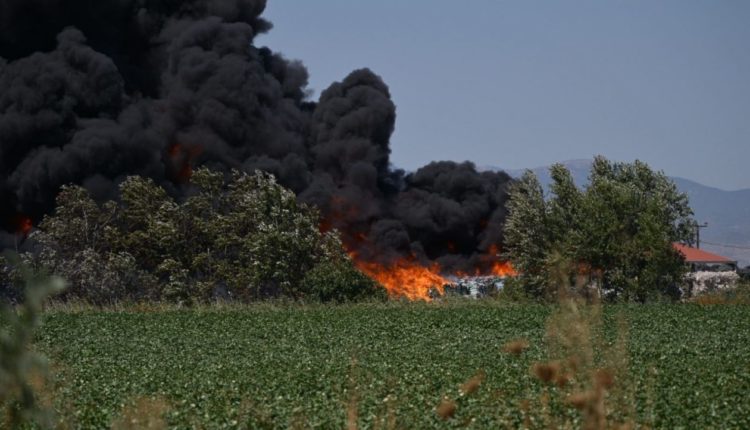 Πυκνοί καπνοί στον ουρανό της Λάρισας μετά από φωτιά σε επιχείρηση