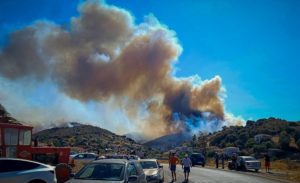 Αναφορικά με την πυρκαγιά στην Εύβοια ο κ. Βαθρακογιάννης σημείωσε ότι «εκδηλώθηκε το μεσημέρι στην περιοχή Πισσώνας. Οι ριπές των ανέμων φτάνουν τα 7 bf, ενώ τα πολύ χαμηλά ποσοστά υγρασίας δημιουργούν διαρκώς κηλιδώσεις και νέες εστίες νοτιότερα της πυρκαγιάς».
