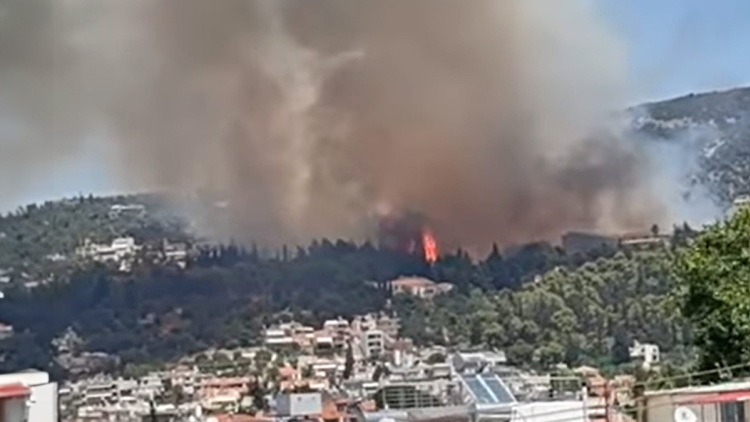 Απογειώθηκε και αεροσκάφος για ρίψη νερού. Σήμανε το 112 για απομάκρυνση από την περιοχή.