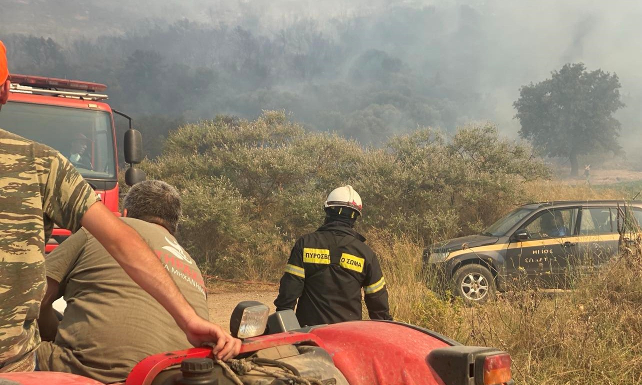 Η φωτιά που λόγω των πολύ ισχυρών ανέμων πήρε άμεσα διαστάσεις, καίει αγροτοδασική περιοχή και θερμοκήπια.