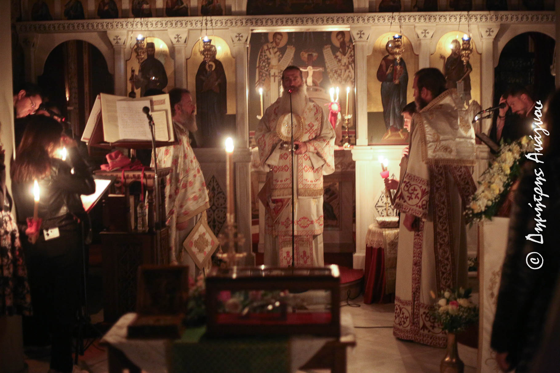 Οι Ιερές Ακολουθίες του Αγιασμού και της Ιεράς Αρχιερατικής Αγρυπνίας μεταδόθηκαν απευθείας από τον Ραδιοφωνικό Σταθμό της Μητροπόλεως (89,4 Fm) και από διαδικτύου, ενώ έψαλαν οι νέοι Πτυχιούχοι και Διπλωματούχοι και μαθητές του Ωδείου, υπό τον Διευθυντή Δρ. κ. Ανδρέα Ιωακείμ και τους Καθηγητές.