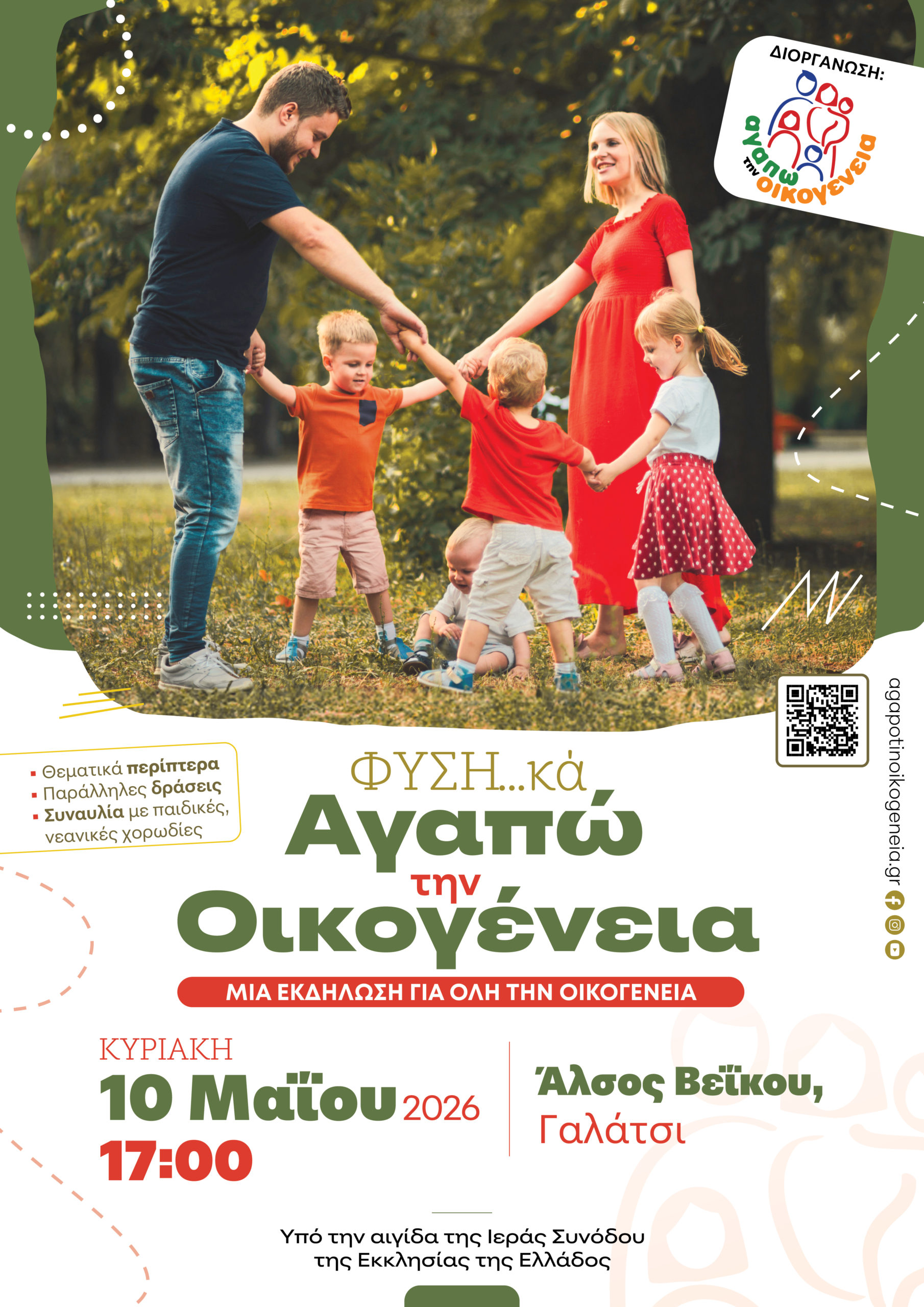 Η εκδήλωση με τίτλο «ΦΥΣΗ-κά ΑΓΑΠΩ ΤΗΝ ΟΙΚΟΓΕΝΕΙΑ!», που τελεί υπό την αιγίδα της Ιεράς Συνόδου της Εκκλησίας της Ελλάδος, φιλοδοξεί να αναδείξει τη σημασία της οικογένειας ως βασικού κοινωνικού πυλώνα, σε συνδυασμό με την επαφή με το φυσικό περιβάλλον.