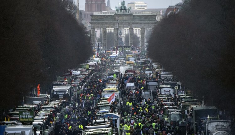 Συνεχίζονται οι κινητοποιήσεις των αγροτών με τρακτέρ σε κεντρικά σημεία στο Βερολίνο