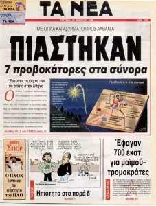 «Ομάδα επτά ενόπλων προβοκατόρων που επιχείρησαν να επιτεθούν εναντίον αλβανικού στρατοπέδου συνέλαβαν χθες και ανακρίνουν οι ελληνικές Αρχές. Παρ’ ότι επισήμως ετηρείτο στάση σιωπής, κυβερνητικοί παράγοντες εκτιμούσαν ότι πρόκειται για εξαιρετικά σοβαρή υπόθεση και εξέφραζαν την ελπίδα ότι θα αποκαλυφθούν οι διασυνδέσεις της ομάδας και οι κύκλοι που κρύβονται από πίσω».