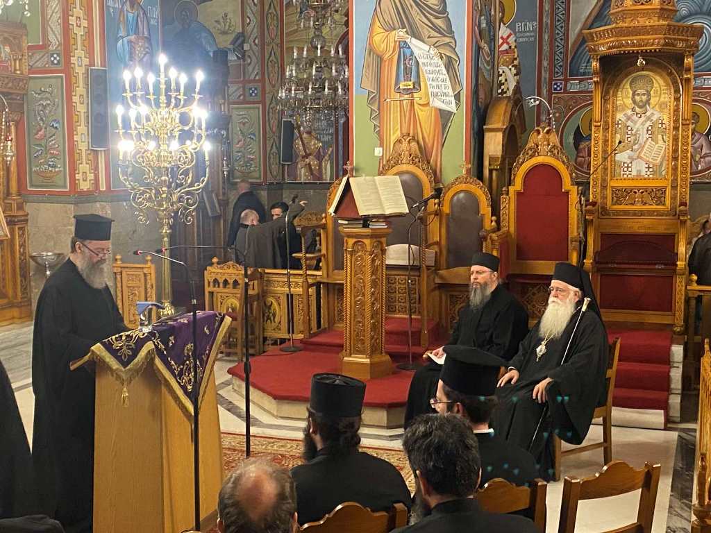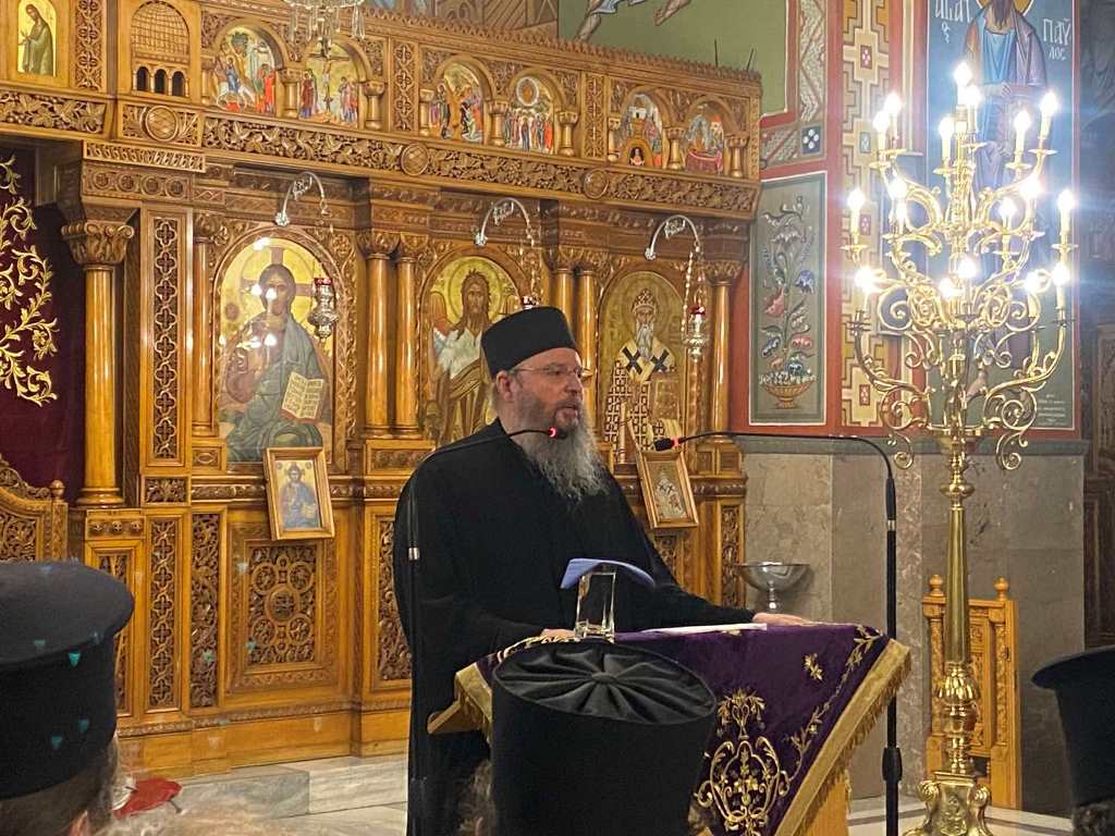 Την Σύναξη άνοιξε ο Προϊστάμενος του Ναού Αρχιμ. Επιφάνιος Οικονόμου, ο οποίος παρατήρησε ότι «τα κενά, που αφήνει στην ψυχή η προσήλωσή της στα γήινα και εφήμερα, έρχονται οι Άγιοι του καιρού μας να καλύψουν. Αποκαλύπτουν την γυμνότητα της σύγχρονης κοσμικότητας, το ατελές και ανιαρό της ανθρώπινης φύσης, όταν δεν γνωρίζει τον Θεό ή αρνείται την κοινωνία μαζί Του και τον ακόρεστο πόθο της να γνωρίσει την Αλήθεια και να βρει, επί τέλους, τον δρόμο προς την ολοκλήρωσή της. Κάποιοι από τους Αγίους αυτούς περιπλανήθηκαν πολύ στον κόσμο, μέχρι να βρουν τον Χριστό και να κάνουν το Ευαγγέλιο τρόπο ζωής… Ένας απ’ αυτούς είναι ο Όσιος Σωφρόνιος ο Αθωνίτης, ιδρυτής και κτήτωρ της Ιεράς Μονής του Τιμίου Προδρόμου στο Έσσεξ της Αγγλίας, που γεννήθηκε στην Μόσχα το 1896, ξεκίνησε την Μοναστική του ζωή στο Άγιον Όρος και έγινε ένας από τους χαρισματικότερους Μοναχούς του 20ού αιώνα».