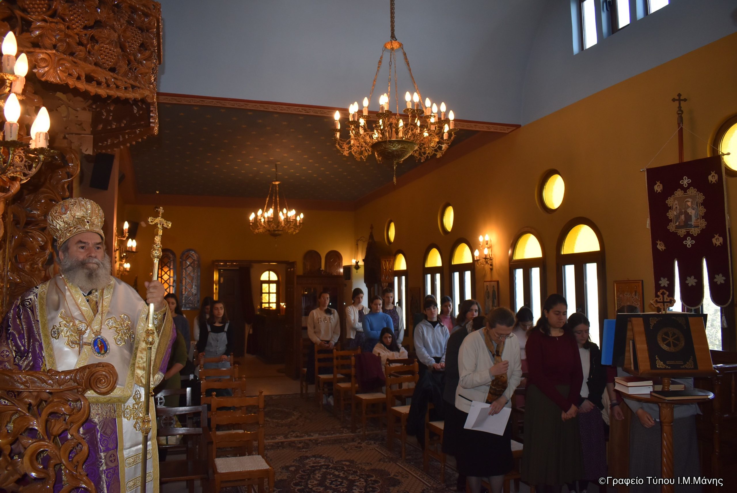 Την Δ’ Κυριακή των Νηστειών, 22 Μαρτίου 2026, ο Σεβ. Μητροπολίτης Μάνης κ. Χρυσόστομος τέλεσε την Θεία Λειτουργία στο Ναό του Επισκοπείου (Μεταμορφώσεως του Σωτήρος) για τις μαθήτριες του Σχολείου «Ελληνική Παιδεία» από την Αθήνα που πραγματοποίησαν εκπαιδευτική εκδρομή στη Μάνη – Μονεμβάσια.