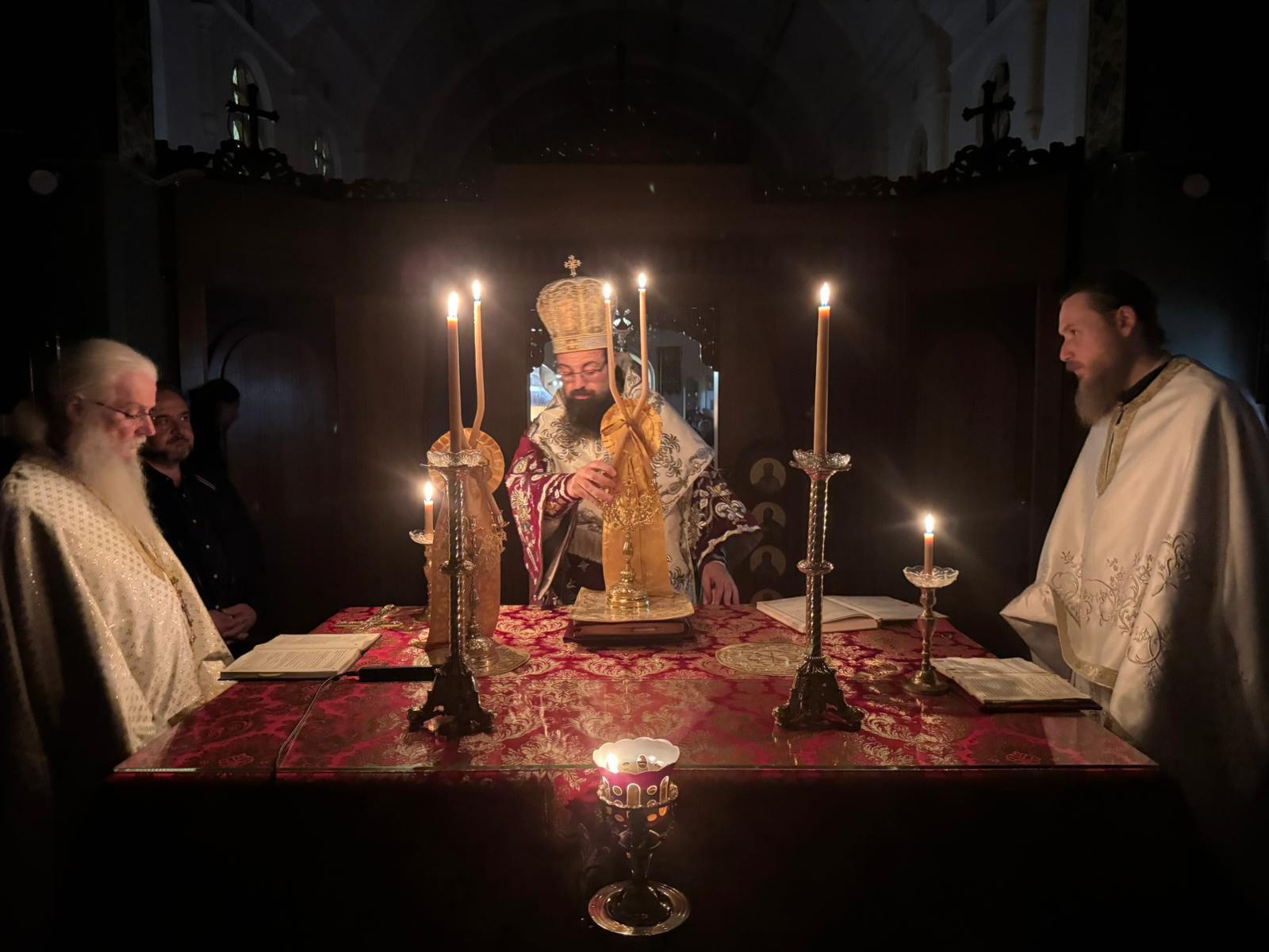 Την Παρασκευή το απόγευμα, 27 Φεβρουαρίου, στον Ιερό Καθεδρικό Ναό της Παναγίας «Άξιον Εστίν», τελέστηκε με ιδιαίτερη κατάνυξη η Α’ Στάση των Χαιρετισμών προς την Υπεραγία Θεοτόκο, χοροστατούντος του Θεοφιλεστάτου Επισκόπου Χώρας κ. Ευμενίου, με την παρουσία του π. Χριστοδούλου από το Άγιον Όρος, ο οποίος βρίσκεται στην Αυστραλία.