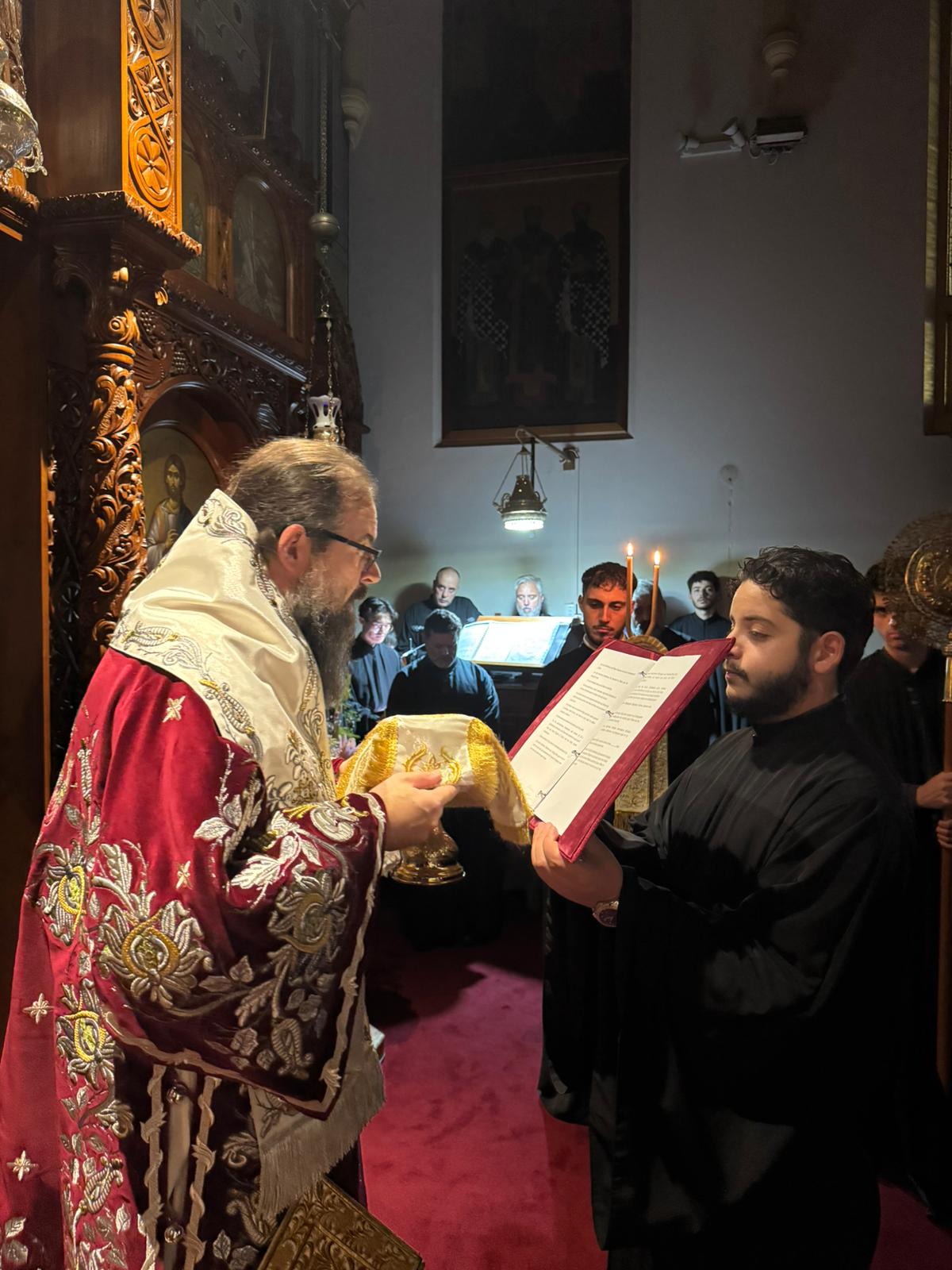 Επίσης ο Θεοφιλέστατος καλωσόρισε εκ μέρους του Σεβασμιωτάτου Αρχιεπισκόπου Αυστραλίας κ. Μακαρίου τον π. Χριστόδουλο Καπέτα από το Άγιον Όρος. Στον σύντομο χαιρετισμό του, ο Επίσκοπος Χώρας αναφέρθηκε στη σημασία του μοναχισμού ως ζωντανής καρδιάς της Εκκλησίας, τονίζοντας ότι το μοναχικό φρόνημα αποτελεί φάρο προσευχής, θυσίας και αυθεντικής πνευματικής ζωής για ολόκληρο το Σώμα της Εκκλησίας.