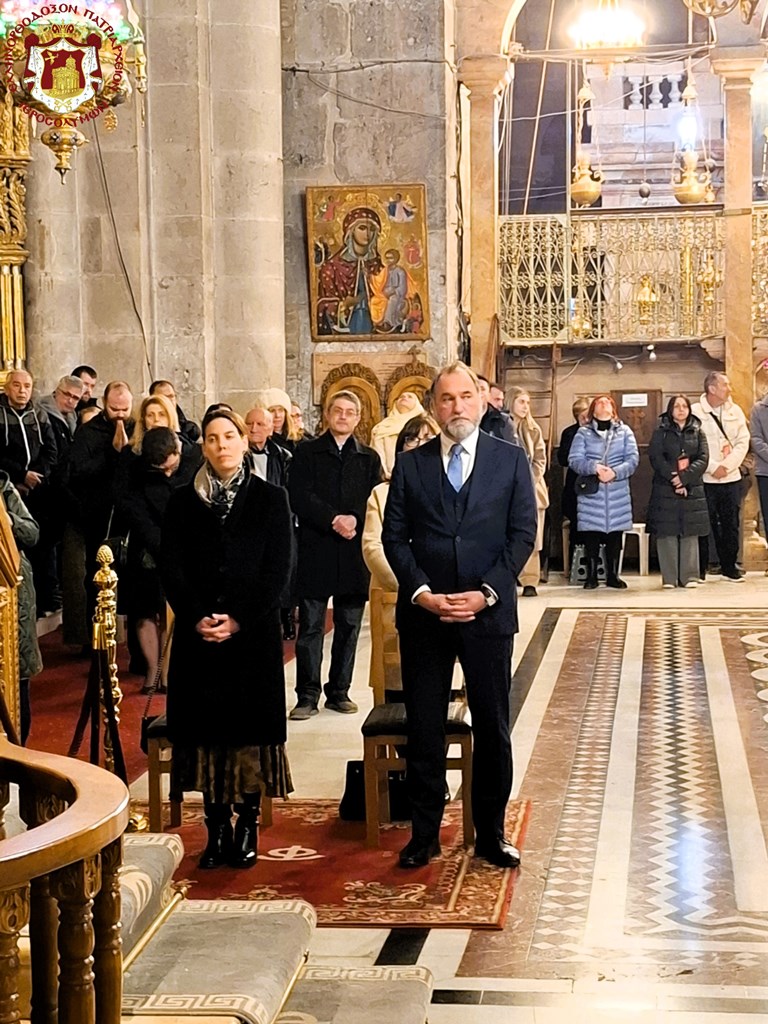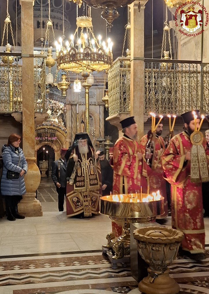 Στην ακολουθία των Χαιρετισμών συμμετείχε ο Γενικός Πρόξενος της Ελλάδας στα Ιεροσόλυμα κ. Δημήτριος Αγγελοσόπουλος και η κ. Άννα Μάντικα και ευλαβείς Χριστιανοί, προς τους οποίους μετά το πέρας της Ακολουθίας μίλησε ο Μακαριώτατος.