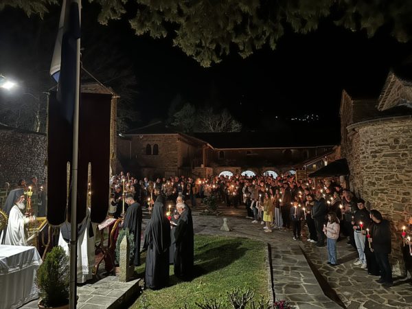 Στην ακριτική Ιερά Μονή Κοιμήσεως της Θεοτόκου Μολυβδοσκεπάστου ετελέσθη και εφέτος, με λαμπρότητα και κατάνυξη, η Ακολουθία της Αναστάσεως του Κυρίου, συγκεντρώνοντας πλήθος πιστών από την ευρύτερη περιοχή, αλλά και προσκυνητές που έσπευσαν να ζήσουν το μυστήριο της «εορτής των εορτών» στο ευλογημένο τούτο μοναστικό καθίδρυμα.