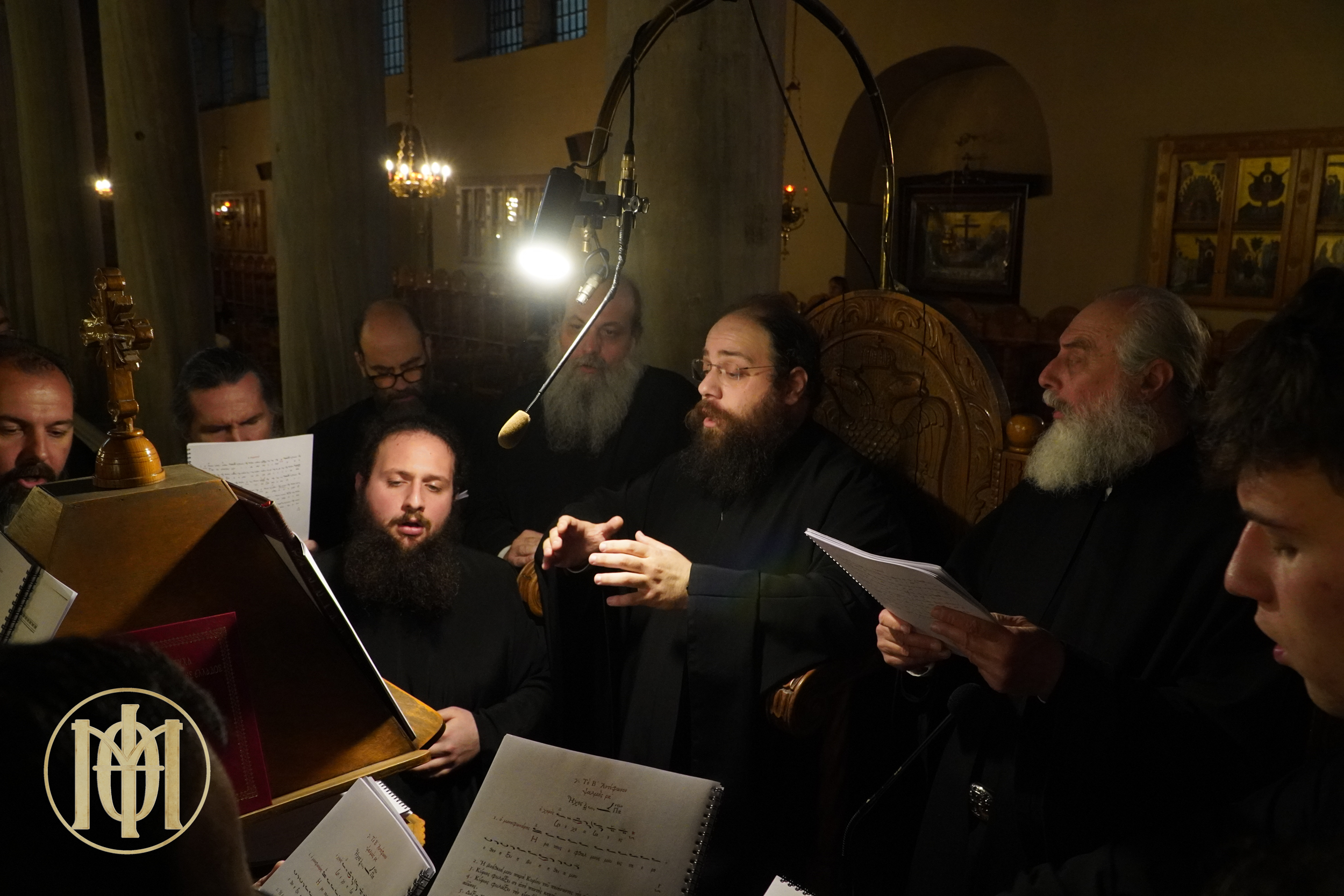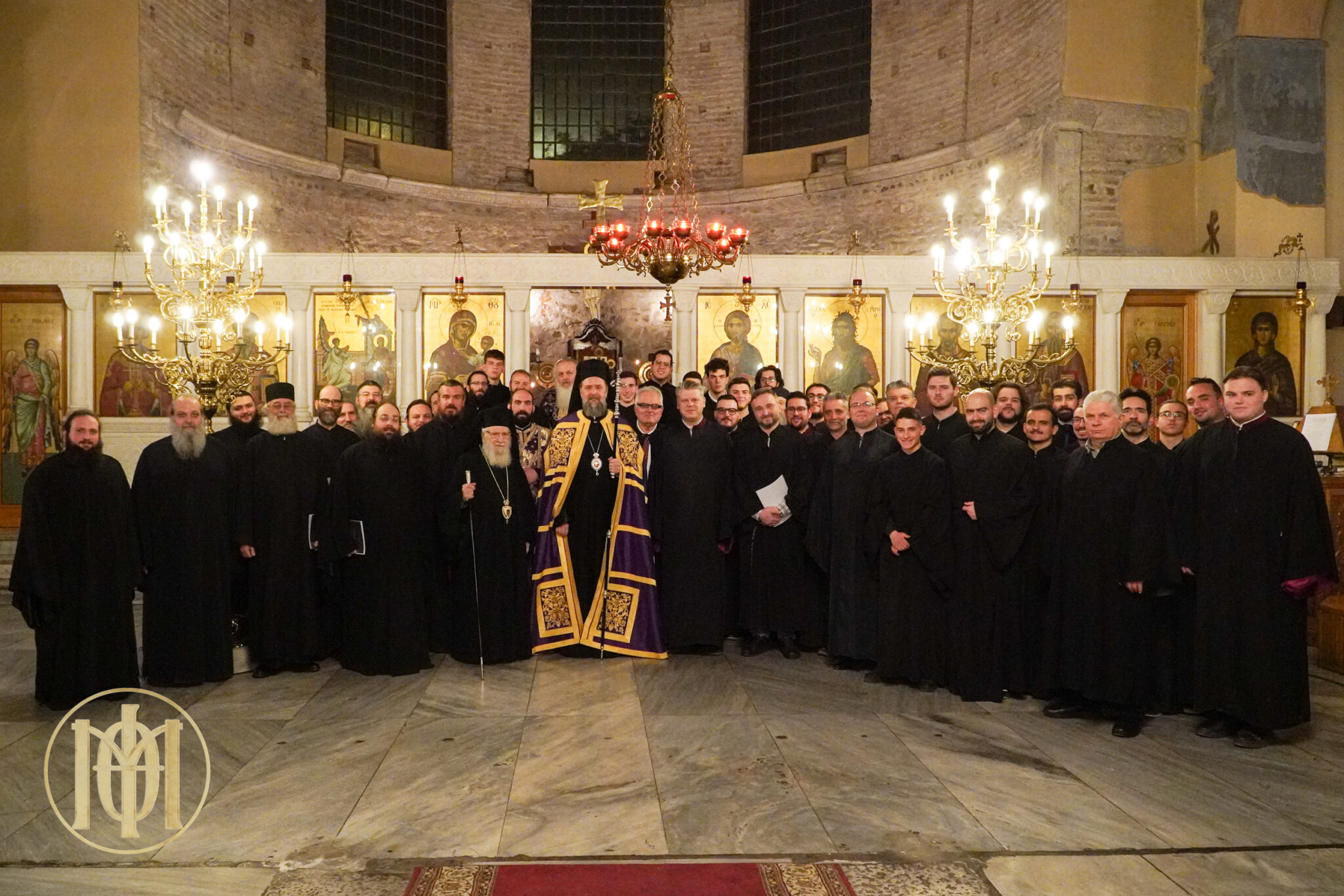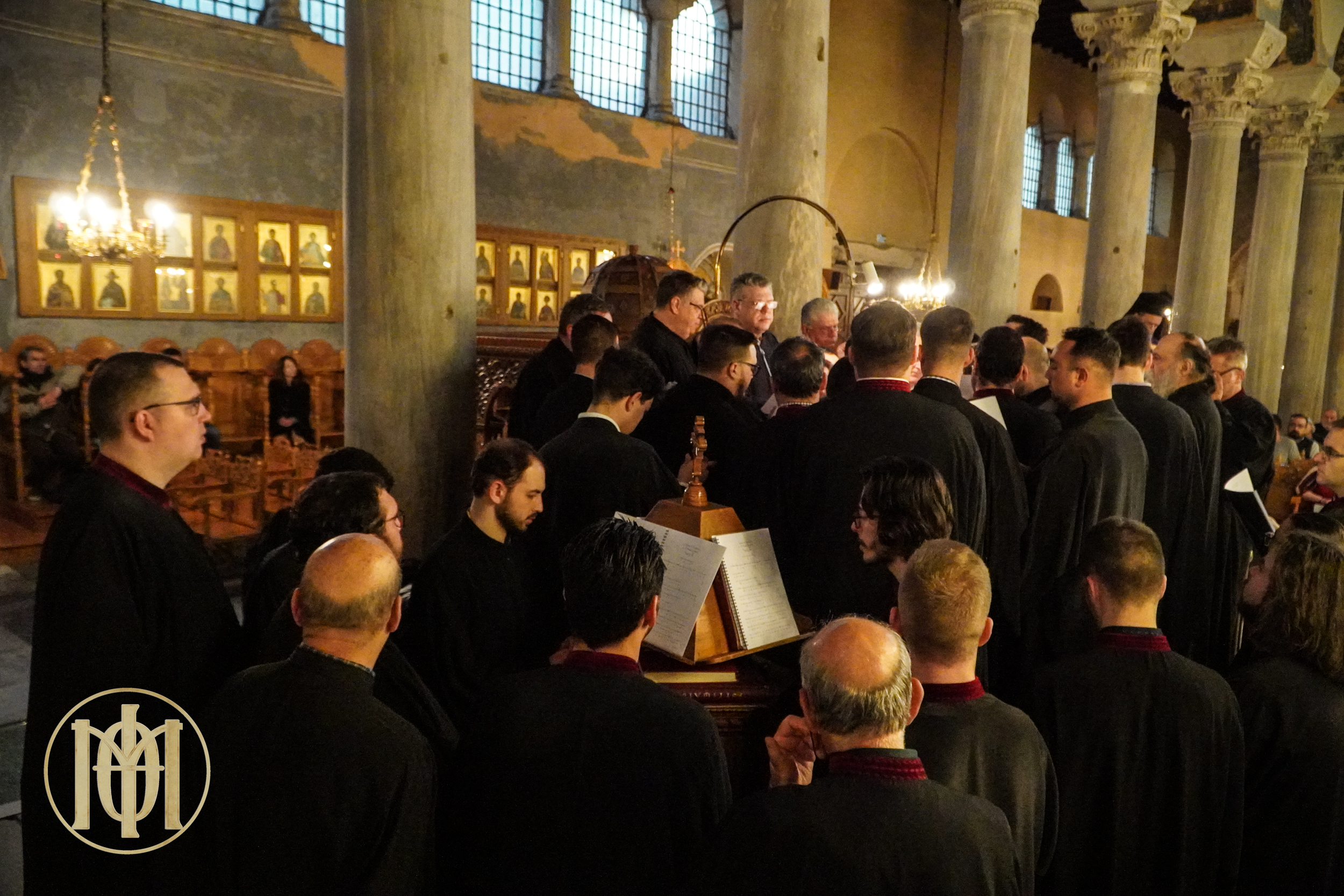 Τα δεξιό αναλόγιο κόσμησε ο βυζαντινός χορός «Ιωσήφ ο Στουδίτης, Αρχιεπίσκοπος Θεσσαλονίκης» υπό τη διεύθυνση του Πρωτοψάλτου του Μητροπολιτικού Ιερού Ναού Αγίου Γρηγορίου του Παλαμά και Αναπληρωτού Καθηγητού της Βυζαντινής Μουσικής στη Θεολογική Σχολή του Α.Π.Θ., κ. Ιωάννου Λιάκου, ενώ το αριστερό αναλόγιο επάνδρωσε χορός κληρικών, πρεσβυτέρων και διακόνων, της Μητροπόλεώς μας υπό τη διεύθυνση του π. Χερουβείμ Τσίνογλου, Ιεροκήρυκος της τοπικής μας Εκκλησίας και Διευθυντού του Εκπαιδευτικού και Πολιτιστικού Ιδρύματος “Άγιος Γρηγόριος ο Παλαμάς”.
