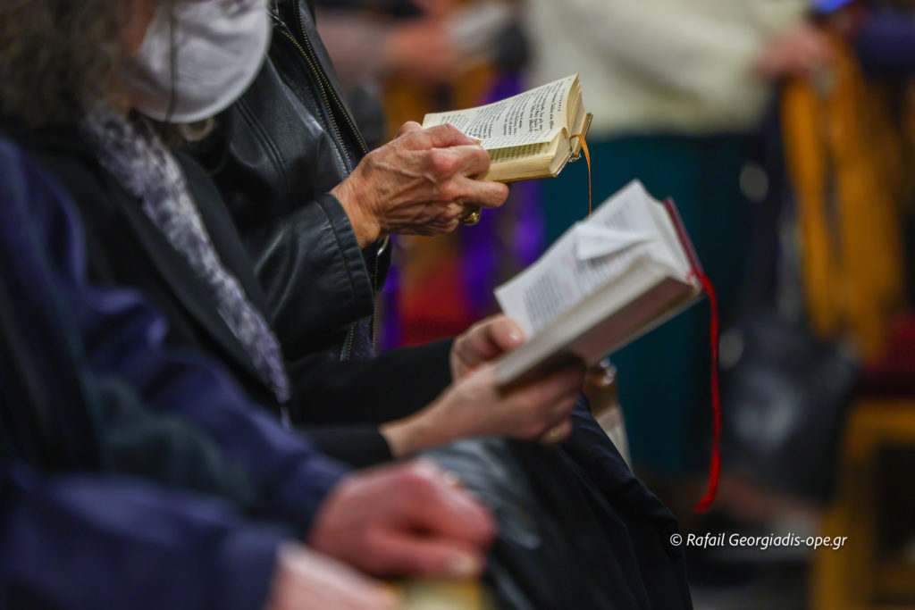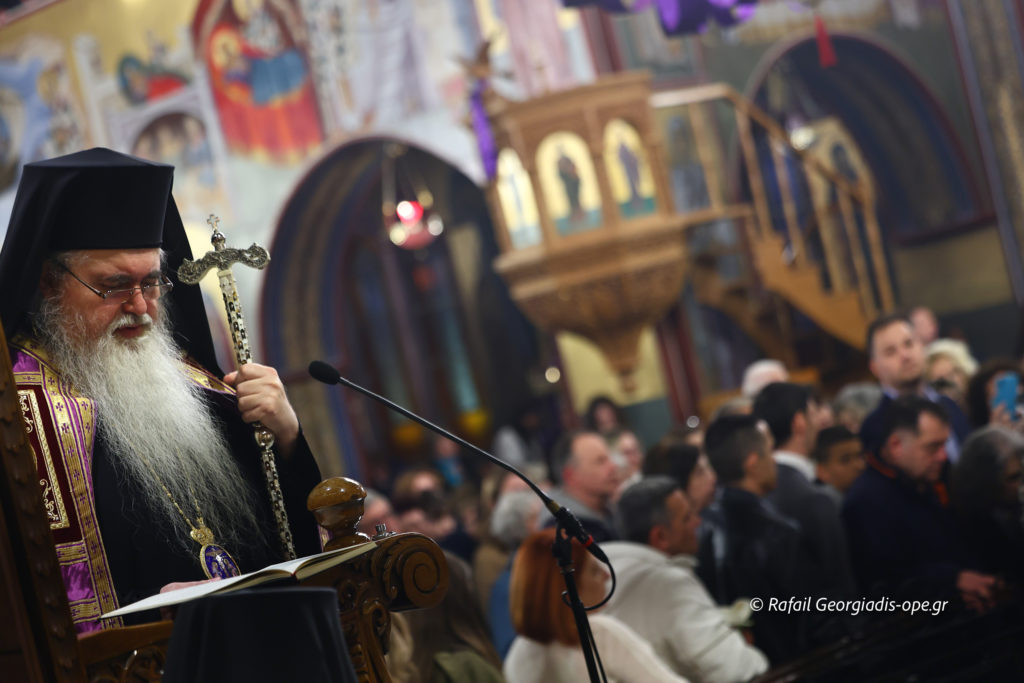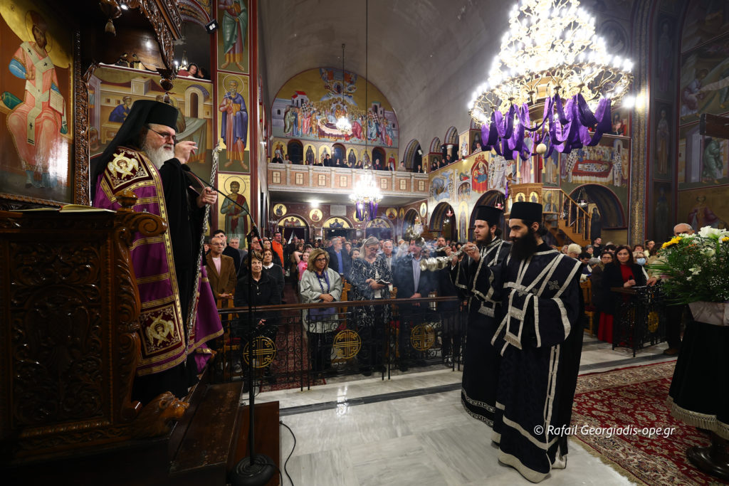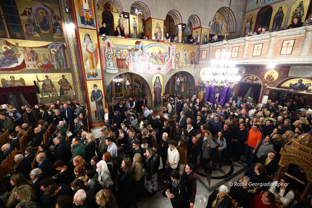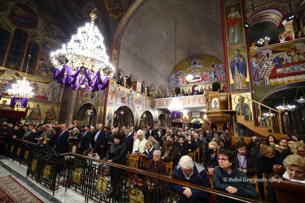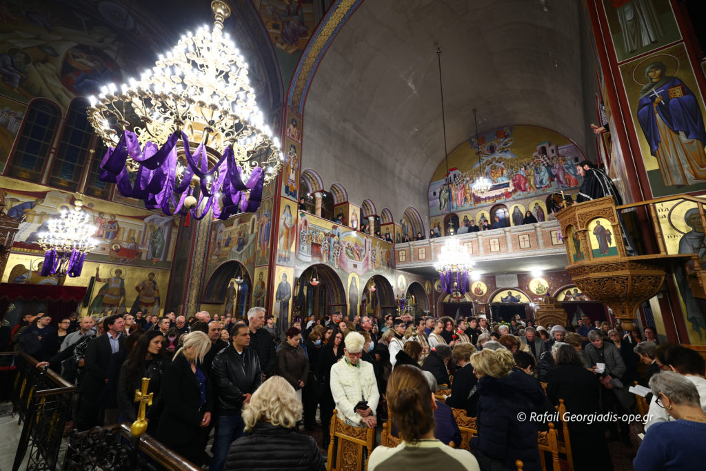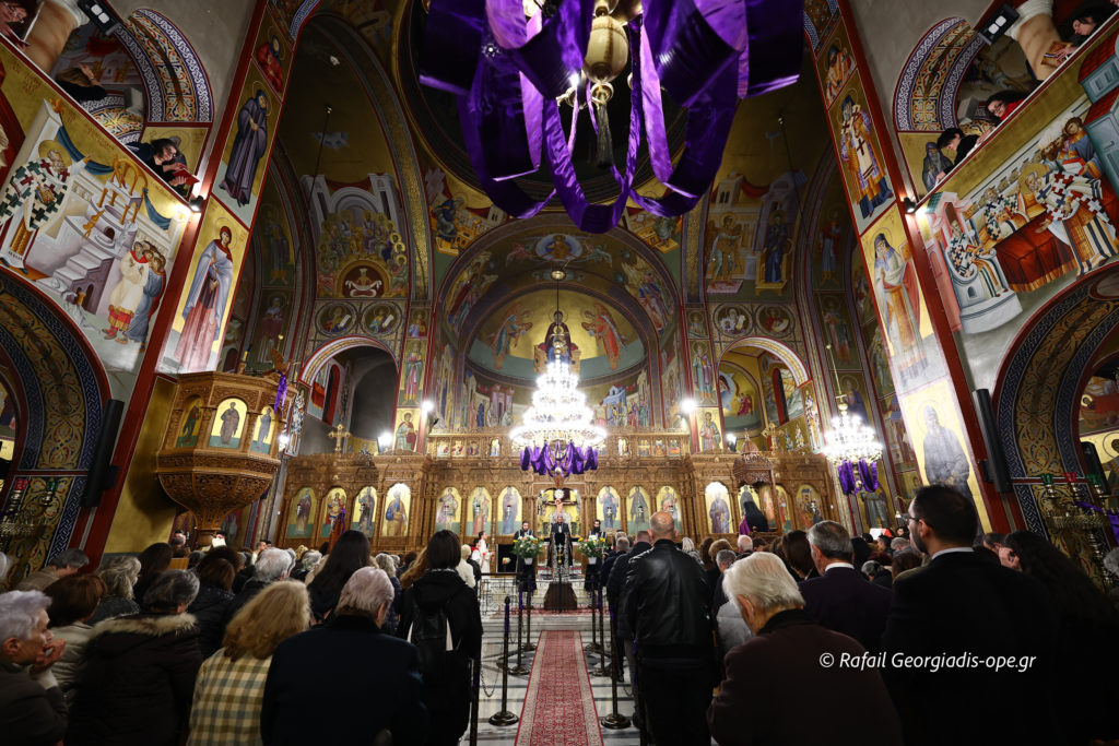 Με βαθιά κατάνυξη και πλήθος πιστών τελέστηκε το απόγευμα της Μεγάλης Πέμπτης η Ακολουθία των Αχράντων Παθών και της Σταυρώσεως του Κυρίου στον Ιερό Καθεδρικό Ναό Αγίου Νικολάου Αρετσούς.