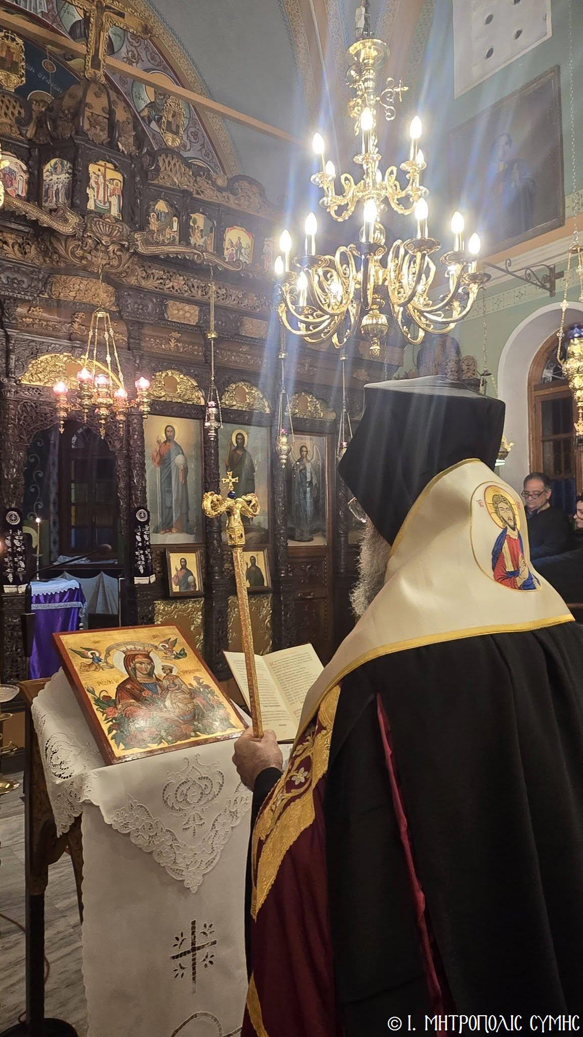 Με ιδιαιτέρα κατάνυξη και ιεροπρέπεια εψάλη εχθές, Παρασκευή 6η Μαρτίου 2026 εκ του Σεβ. Μητροπολίτου Σύμης κ. Χρυσοστόμου η διατεταγμένη ακολουθία των Β΄ Χαιρετισμών προς την Υπεραγία Θεοτόκο, στον Ενοριακό Ι. Ναό Ευαγγελισμού της Θεοτόκου Σύμης, συμπαραστατουμένου υπό του Αιδεσ. Εφημερίου π. Αντωνίου Μανιά και του Ιεροδιακόνου π. Παύλου Τερεζάκη.