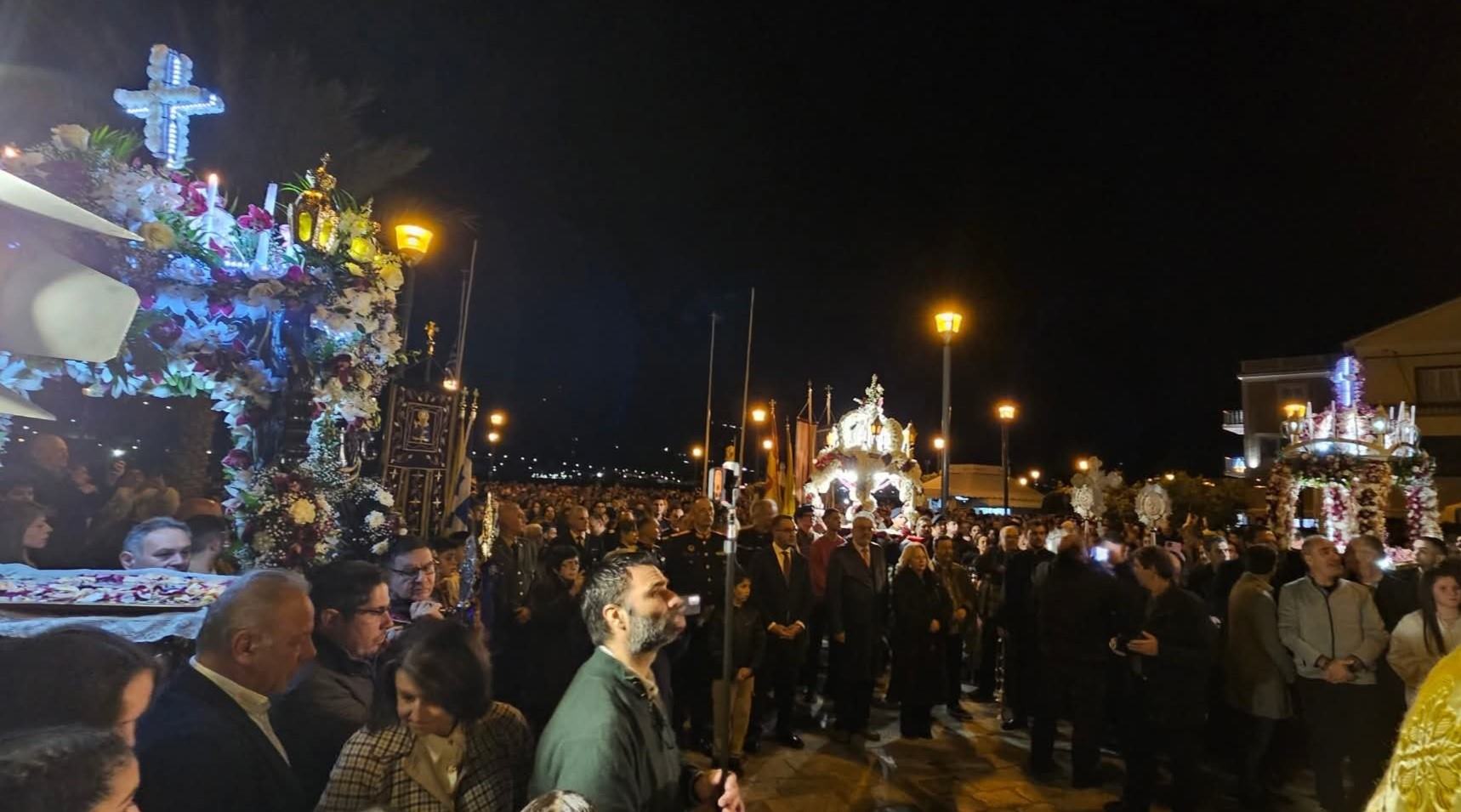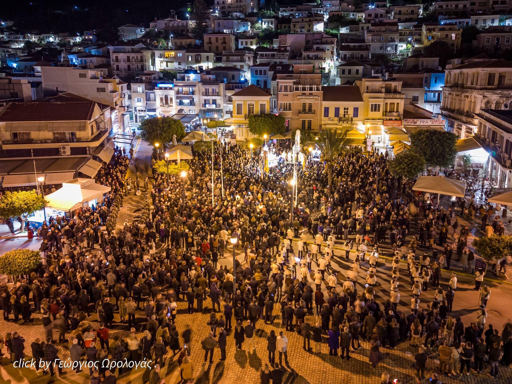 Κατά την καθιερωμένη συνάντηση των Επιταφίων στην κεντρική πλατεία, ανεπέμφθη δέησις υπέρ υγείας και σωτηρίας του λαού, και ακολούθως ο Σεβασμιώτατος απηύθυνε λόγο πνευματικής οικοδομής, τονίζοντας, μεταξύ άλλων, ότι ο Σταυρός του Χριστού δεν αποτελεί τέλος, αλλά αφετηρία ζωής, και ότι άδειασε ο τάφος Του και γέμισαν οι καρδιές μας από φως, ζωή, χαρά και ελπίδα. Έτσι θα περάσουμε από την θνητότητα στην Ανάσταση, στην «απαρχή άλλης βιοτής». .