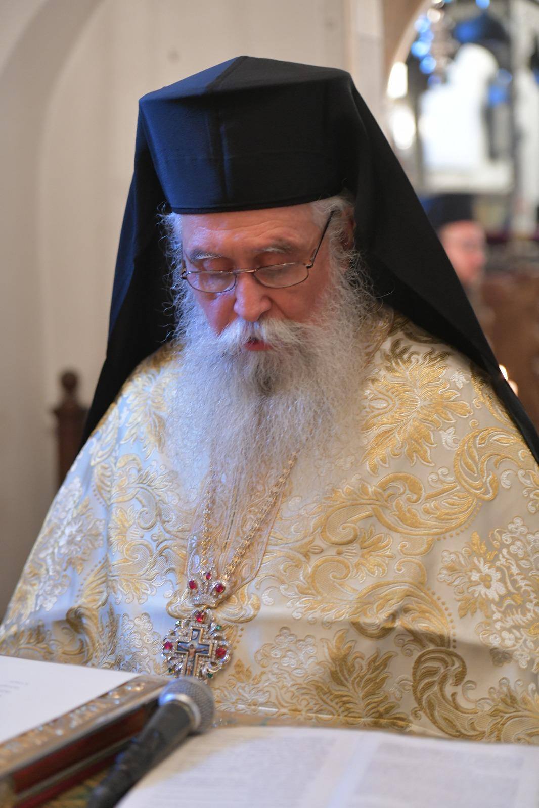 Κατά την λιτή αλλ’ εξόχως συγκινητική αυτή Ακολουθία, ο Εψηφισμένος, φορώντας επιτραχήλιο και φελόνιο, θυμίασε τον Ιερό Ναό, ενω οι Ιεροψάλτες έψαλλαν τροπάρια της Πεντηκοστής. Εν συνεχεία δεήθη υπέρ του Μακαριωτάτου Πατρός και Πατριάρχου.