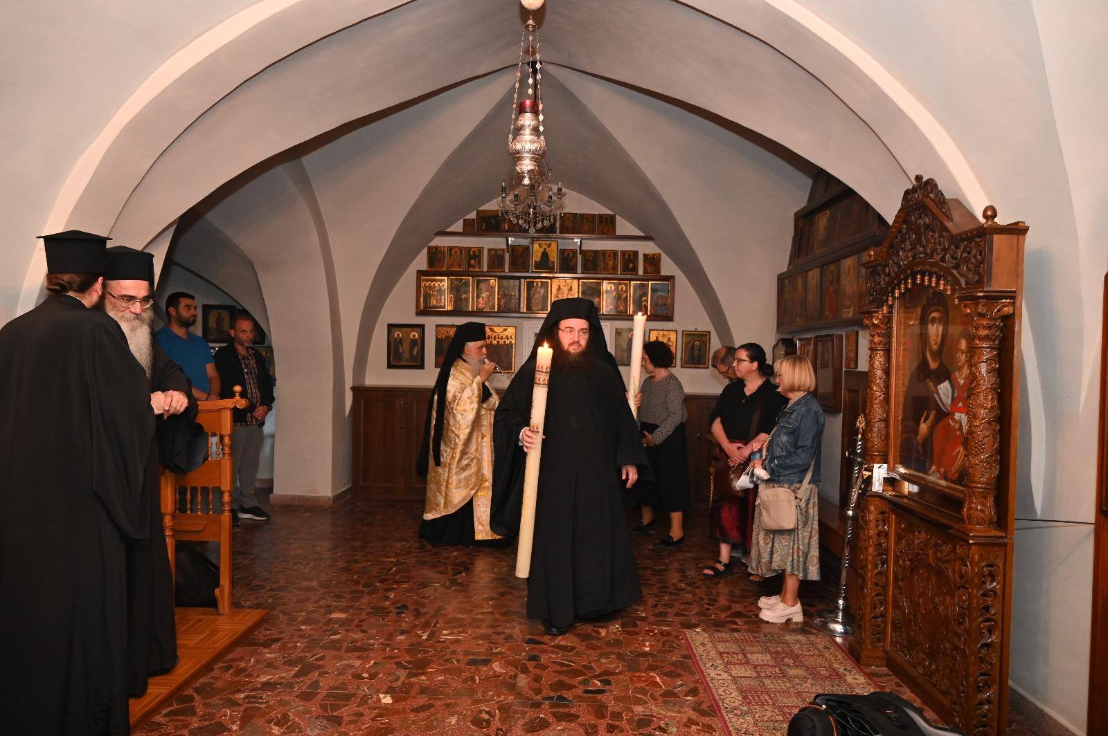 Το Σάββατο 18 Οκτωβρίου 2025, το μεσημέρι ήχησαν χαρμόσυνα οι καμπάνες του Πανίερου Ναού της Αναστάσεως, σημαίνουσες την έναρξη του Μεγάλου Πανηγυρικού Εσπερινού, ο οποίος τελέσθηκε στον κεντρικό Μοναστηριακό και Πατριαρχικό Ναό των Αγίων Μεγάλων Βασιλέων και Ισαποστόλων Κωνσταντίνου και Ελένης, χοροστατούντος εκ του Παραθρονίου του Μακαριωτάτου Πατριάρχη Ιεροσολύμων κ.κ. Θεοφίλου Γ΄.