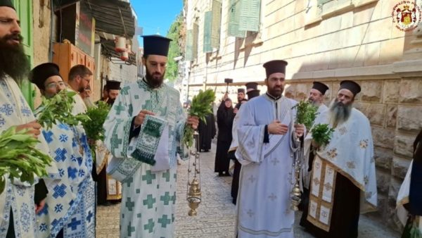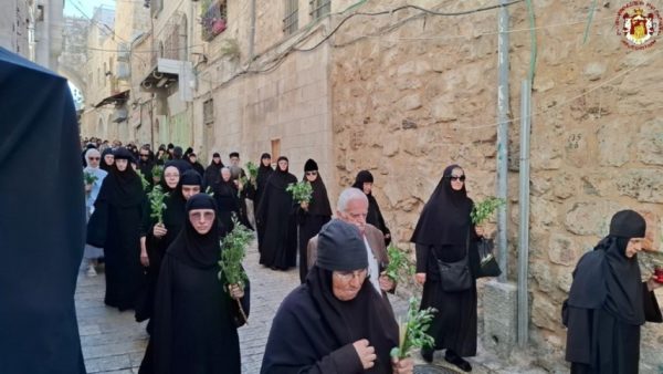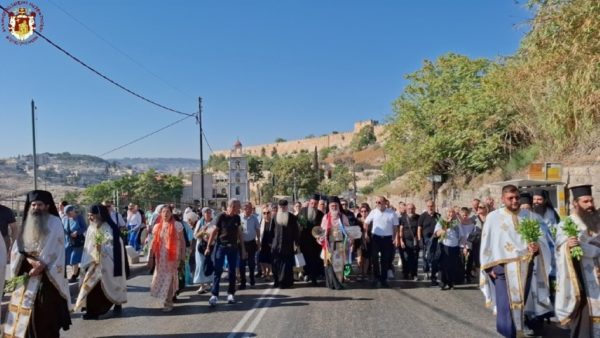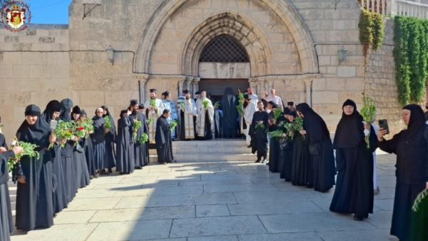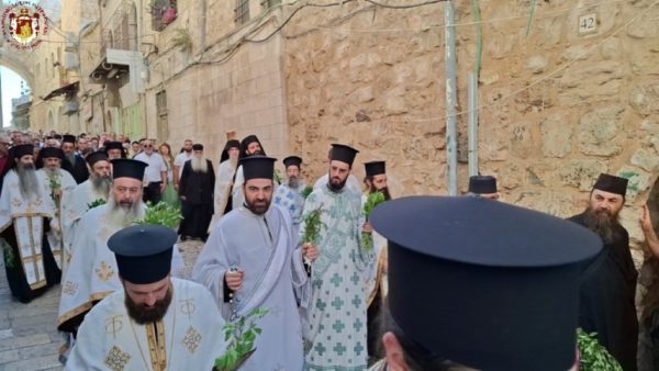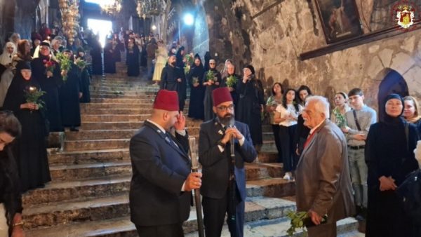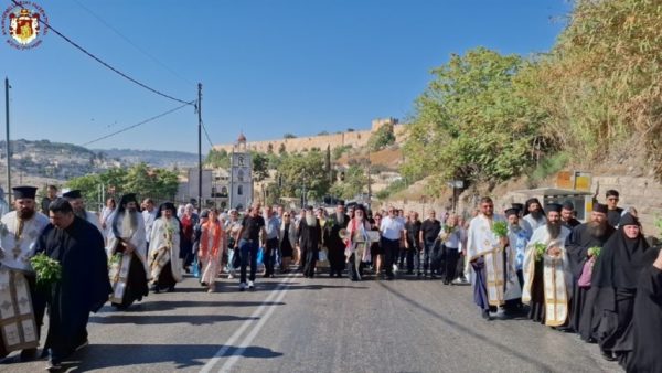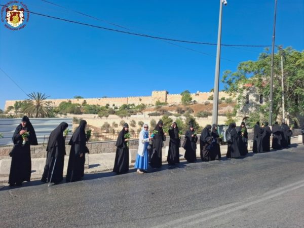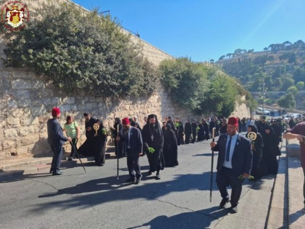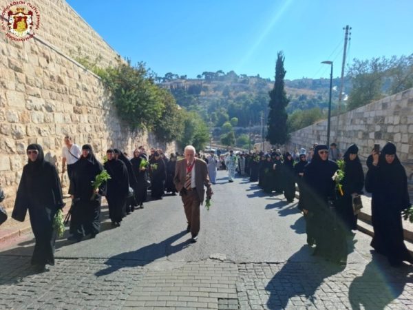 Στην ιερά λιτανεία προπορεύονταν ιερείς, πολλές μοναχές από το Πατριαρχείο Ιεροσολύμων καθώς και από τη Ρωσία, τη Ρουμανία και άλλες χώρες, ενώ ακολουθούσαν ο Σεβασμιώτατος Μητροπολίτης Πτολεμαΐδος – Άκκρης κ. Μακάριος, οι Επίτροποι, οι χριστιανικές νεολαίες της Ιερουσαλήμ και πλήθος πιστών και προσκυνητών, με τους ψάλτες να ψάλλουν τα «Απόστολοι εκ περάτων…» και «Εν τη Γεννήσει την παρθενίαν εφύλαξας…».