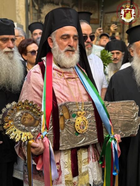 Μετά την Απόλυση, με τις πρεσβείες της Υπεραγίας Θεοτόκου, ακολούθησε η άνοδος της εικόνας της Κοιμήσεως της Θεοτόκου, η οποία κομίστηκε από τον Ηγούμενο Σεβασμιώτατο Μητροπολίτη Ελενουπόλεως κ. Ιωακείμ, από το Θεομητορικό Μνήμα προς το Ιερό Μετόχιο της Γεθσημανής.