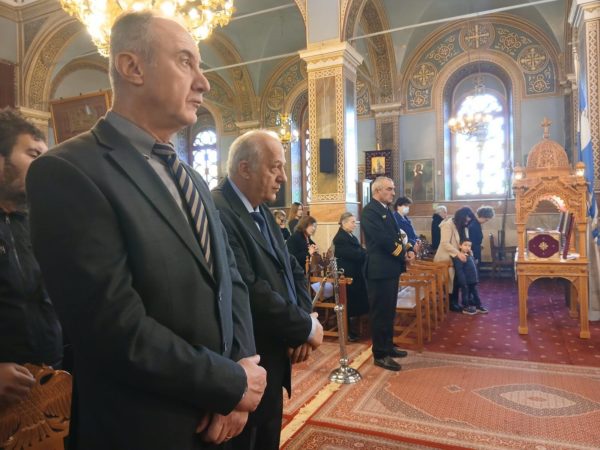 Μεταξύ των πολυαρίθμων πιστών ήταν οι Βουλευτές Χίου κ. Παναγιώτης Μηταράκης και κ. Σταύρος Μιχαηλίδης, ο Δήμαρχος Χίου κ. Ιωάννης Μαλαφής, ο πρ. Διοικητής της 96 ΑΔΤΕ Υποστράτηγος έ. α. κ. Χαραλαμπος Ψαρόπουλος, ο Υπολιμενάρχης Χίου, ο Διοικητής της Τροχαίας, ο Διοικητής της ΑΕΝ ΠΛΟΙΑΡΧΩΝ Οινουσσών, ο Υποδιοικητής της ΑΕΝ ΜΗΧΑΝΙΚΏΝ Χίου, Αξιωματικοί των Ε. Δ., πολλοί Φιλόλογοι Καθηγητές, νέοι και νεάνιδες και αρκετοί Χριστιανοί.