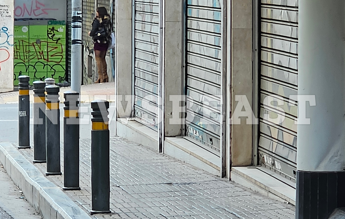 Έχει φορέσει τις μπεζ ψηλές μπότες της, μια μοβ μίνι φούστα, καλσόν και ένα μπουφάν τρύπιο. Η νεαρή κοπέλα βρίσκεται στη συμβολή των οδών Καποδιστρίου και 3ης Σεπτεμβρίου και κάνει βόλτες κοιτώντας αριστερά και δεξιά για πελάτες. Λίγα μέτρα πιο κάτω, με την άκρη του ματιού βλέπουμε άλλη μία κοπέλα που και αυτή βρίσκεται για τον ίδιο λόγο εκεί. Δεν είναι μόνο οι κοπέλες, αλλά και αγόρια εκδίδονται στον ίδιο δρόμο και φυσικά φυλάνε τσίλιες με διακριτικότητα άνδρες που τους «προστατεύουν», κάνοντας ότι πίνουν καφέ και μιλούν στο κινητό ή μεταξύ τους.