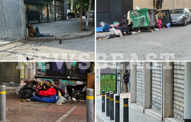 Μέσα στο τσουχτερό κρύο κάποιοι παρακαλούσαν για λίγα ψιλά, μήπως και εξασφαλίσουν τη δόση τους ή μια μπουκιά φαγητό. Ένα σουρεαλιστικό σκηνικό δίπλα από τα νέα ξενοδοχεία που κοσμούν εδώ και λίγα χρόνια το κέντρο της Αθήνας.