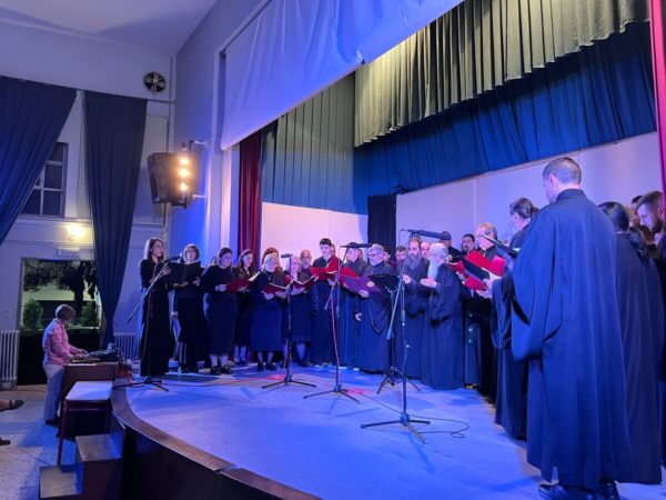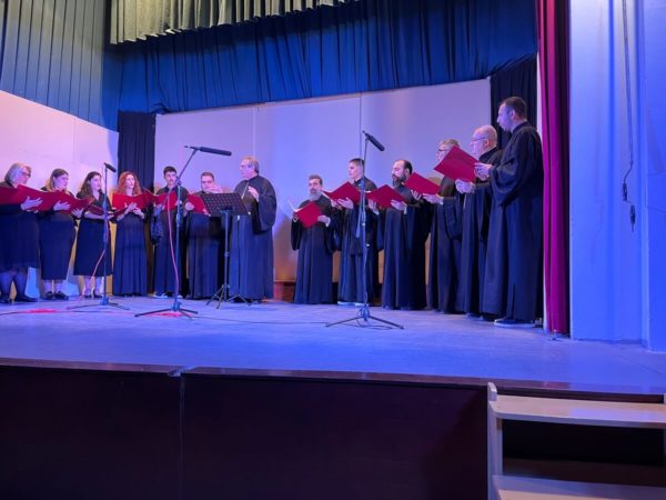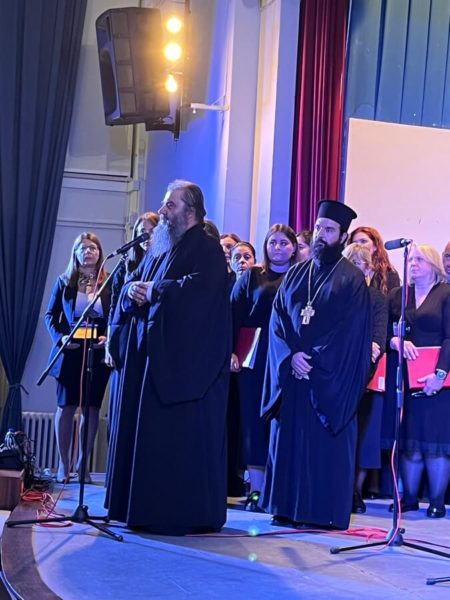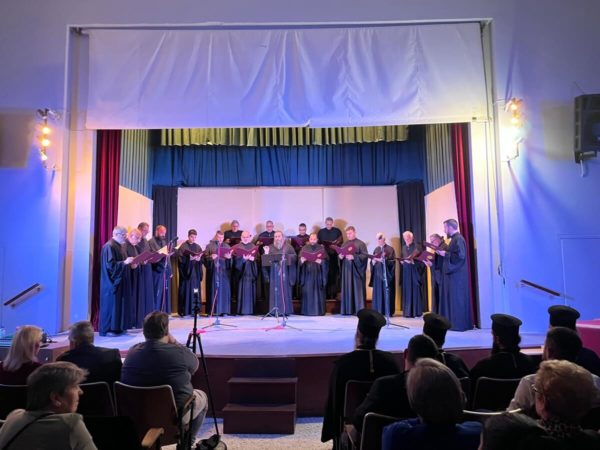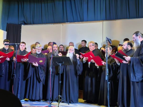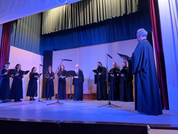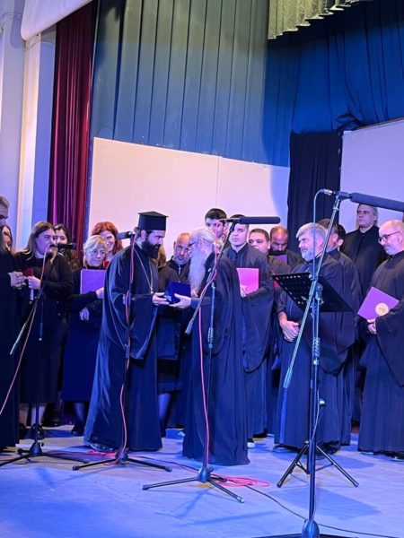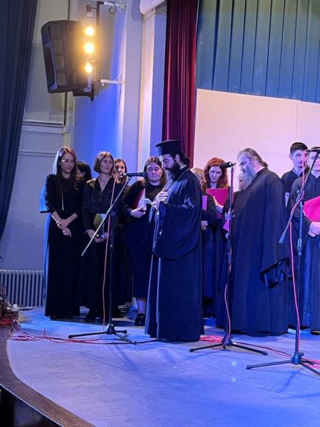 3. της Ιεράς Μητροπόλεως Καρυστίας και Σκύρου υπό τη διεύθυνση του Διευθυντού της Σχολής π. Σωτηρίου Τσούγκα. Οι χορωδίες με σεμνό και ιεροπρεπές ύφος ερμήνευσαν τους εκκλησιαστικούς ύμνους των προγραμμάτων τους. Στο τελευταίο μέρος της εκδήλωσης όλες οι χορωδίες μαζί έψαλλαν τη σύνθεση του ιερομονάχου Ιωάσαφ Διονυσιάτου «Δι’ ευχών των αγίων πατέρων ημών» υπό τη διεύθυνση του κ. Ιωάννη Παπαχρόνη.