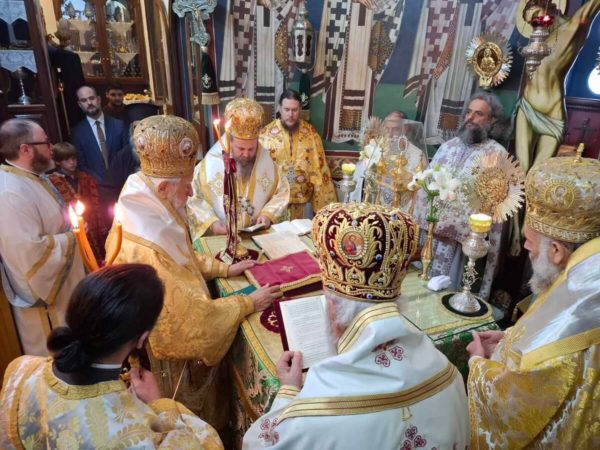 Την Κυριακή 19 Οκτωβρίου, τελέσθηκαν στον Ιερό Ναό Αγίου Νικολάου Καρύστου η ακολουθία του Όρθρου χοροστατούντος του Σεβασμιωτάτου Μητροπολίτου μας και στη συνέχεια, πολυαρχιερατική Θεία Λειτουργία προεξάρχοντος του Σεβασμιωτάτου Μητροπολίτου Καρυστίας και Σκύρου κ. Σεραφείμ και τη μετοχή των Σεβασμιωτάτων Μητροπολιτών Ειρηνουπόλεως κ. Νικάνδρου (Οικουμενικού Πατριαρχείου), Νευροκοπίου κ. Σεραφείμ (Πατριαρχείο Βουλγαρίας) και του Σεβασμιωτάτου Ποιμενάρχου μας, ο οποίος και κήρυξε τον θείο λόγο.