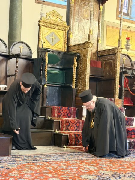 Το πρωί της ίδιας ημέρας ο Παναγιώτατος χοροστάτησε κατά τη Θεία Λειτουργία των Προηγιασμένων Τιμίων Δώρων.